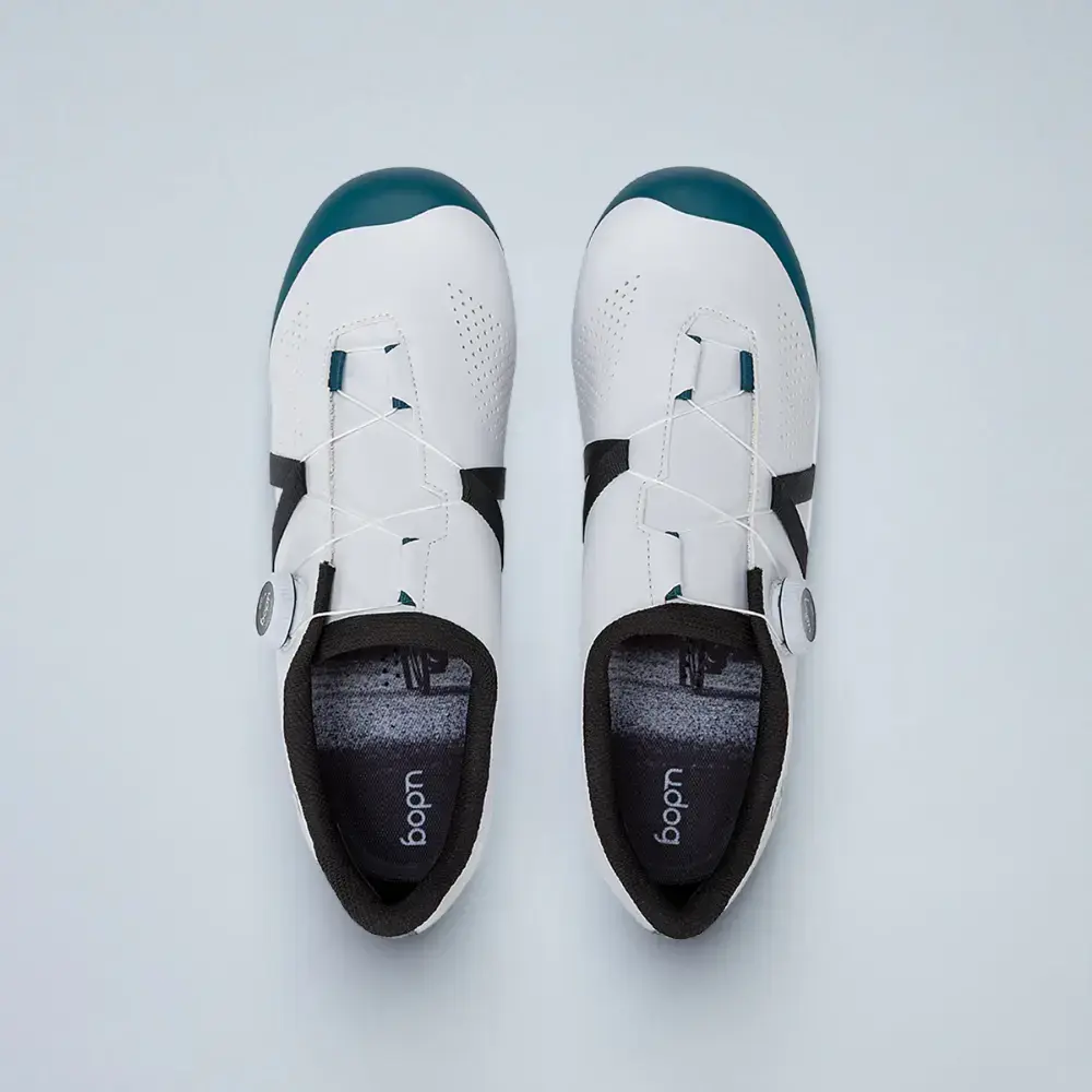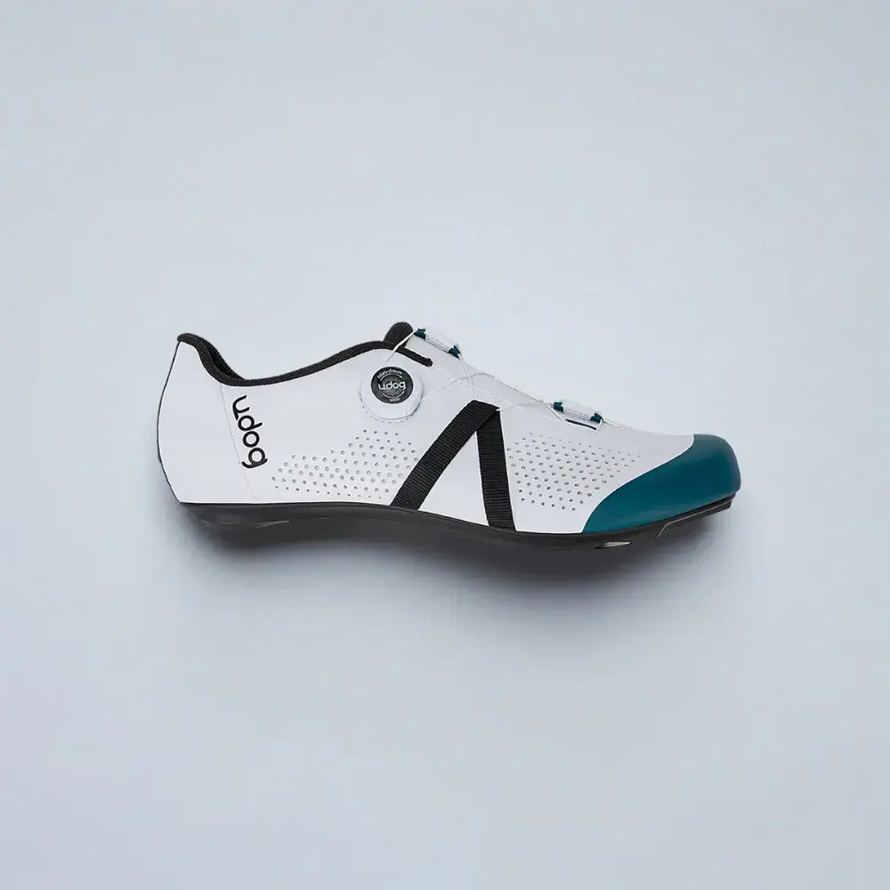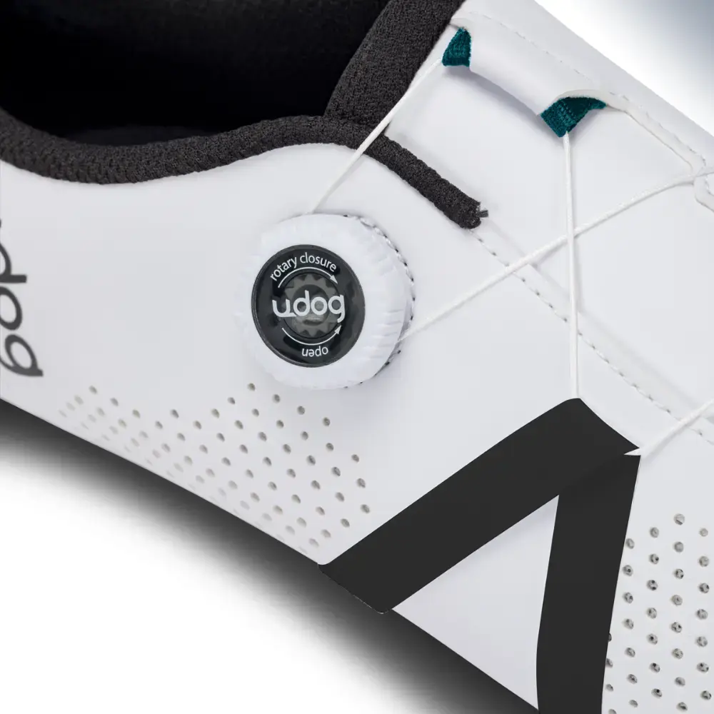 De Udog Sempre Wielrenschoenen zijn gemaakt voor comfortabele fietstochten, zelfs bij lange afstanden. Het slimme Twist Tech sluitsysteem zorgt ervoor dat de schoenen perfect om je voeten zitten en eenvoudig zijn af te stellen. De draaiknop is makkelijk te bedienen, ook tijdens het fietsen, en geeft veel grip dankzij de zachte rubberen rand. De stevige, geweven veters blijven goed op hun plaats en zijn extra duurzaam. De zool is gemaakt van carbon-nylon en heeft een ventilatiekanaal, zodat je voeten koel blijven. De rubberen stukken bij de hiel en teen zorgen voor extra grip bij het lopen.