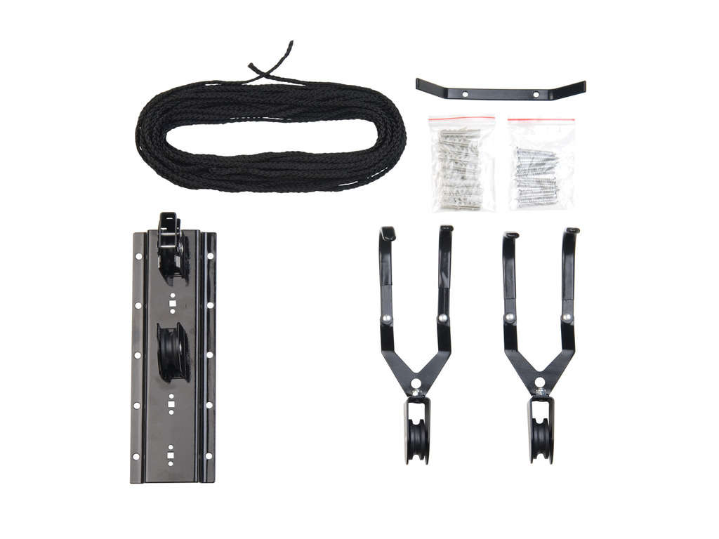 De Unior Fietslift maak je vast aan het plafond om zo makkelijk aan je fiets te kunnen werken. Dankzij het koord kun je de fiets omhoog en omlaag trekken, waardoor je de fiets niet hoeft te tillen. De lift kan een maximum van 22.5 kg dragen. De haken passen om je stuur en zadel en houden de fiets zo stevig en stabiel.