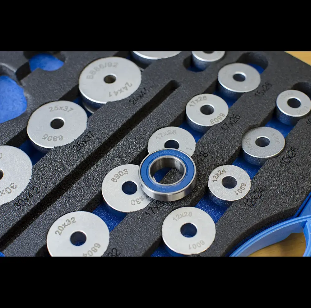 • Geschikt voor de volgende lagers: 608, 1526, 6000, 6001, 6802, 6803, 6804, 6805, 6900, 6901, 6902, 6903, R6, 28x17 (Hope), BB30 en alle Press-fit standaarden