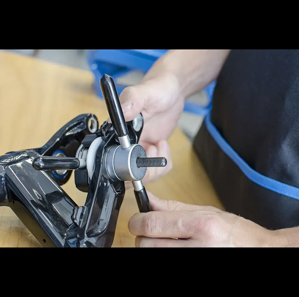 De Unior Lager Pers Kit 22-delig is een veelzijdige en universele lagerpers die het installeren van lagers op vrijwel alle fietsframes en componenten eenvoudig en nauwkeurig maakt. Deze set bevat een spindel met twee schroefhandvatten en een reeks adapters voor verschillende standaardlagers, waaronder BB30 en alle Press-fit standaarden. Dankzij de kunststof gecoate adapters wordt schade aan carbon oppervlakken voorkomen. Eén van de handvatten is voorzien van een snelspansysteem, waardoor de installatie nog sneller en gemakkelijker verloopt. De set wordt geleverd in een compacte tweelaagse SOS foam opbergbox, zodat alle onderdelen overzichtelijk en veilig opgeborgen blijven.