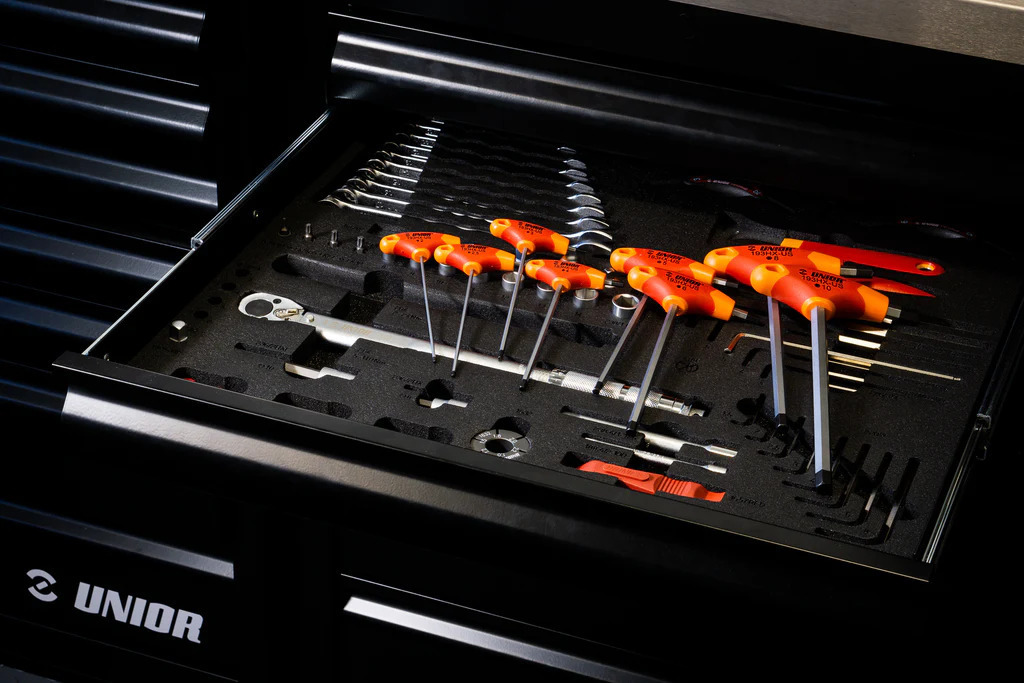 De Unior T-Greep Inbussleutel is een hoogwaardig en innovatief gereedschap dat maximale krachtoverbrenging en duurzaamheid biedt. De sleutel is vervaardigd uit hoogwaardig chroom-vanadiumstaal, met een verhoogde dichtheid op de punten waar de hoogste druk wordt uitgeoefend. Dit resulteert in een uitzonderlijke sterkte en een lange levensduur. De kling is verchroomd en de punt is zwart geanodiseerd, wat zorgt voor extra bescherming en grip in de schroefkop.