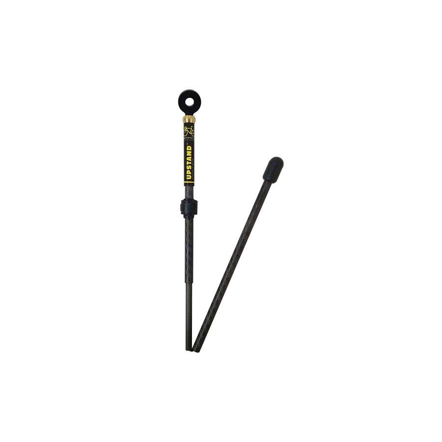 Met deze Upstand Racefiets Standaard 26" hoef je je fiets nooit meer tegen een boom te zetten met in je achterhoofd de gedachte ‘als mijn fiets maar niet wegschuift!’. Deze opvouwbare standaard is namelijk gemakkelijk mee te nemen in je achterzak en geeft je de mogelijkheid om je fiets neer te zetten waar je maar wilt zonder de kans dat deze omvalt. Ideaal wanneer je even iets wilt gaan eten tijdens een lange fietstocht. De meegeleverde metalen ring plaats je achter je snelspanner en verbindt je met de magneet in de kop van de upstand. De upstand is opvouwbaar en past daardoor gemakkelijk in je achterzak, je vouwt hem als het ware als een tentstok op. Doordat de upstand van een combinatie van carbon en aluminium is gemaakt weegt het totale pakket slechts 40 gram!