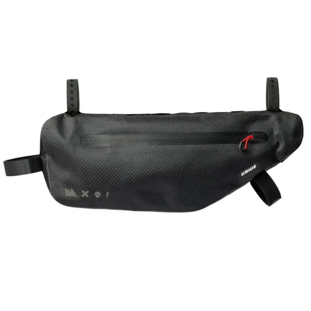De USWE Frametas is ontworpen voor rijders die efficiëntie, veiligheid en veelzijdigheid eisen bij elke rit. De aerodynamische vorm en de verstelbare (elastische en klittenband) banden zorgen voor een nauwsluitende, stabiele pasvorm op de meeste frames. De waterdichte stof en naadloze, gelaste constructie beschermen je spullen onder alle weersomstandigheden. De YKK waterbestendige rits geeft toegang tot het hoofdvak, waar een extra intern ritsvakje helpt om je belangrijkste spullen georganiseerd te houden. Een handige kabelpoort aan de voorkant maakt het opladen van je fietscomputer of telefoon mogelijk. Deze tas is perfect voor MTB, E-MTB, gravel of avontuurlijk wielrennen, en houdt je essentiële spullen dichtbij, veilig en gemakkelijk toegankelijk.