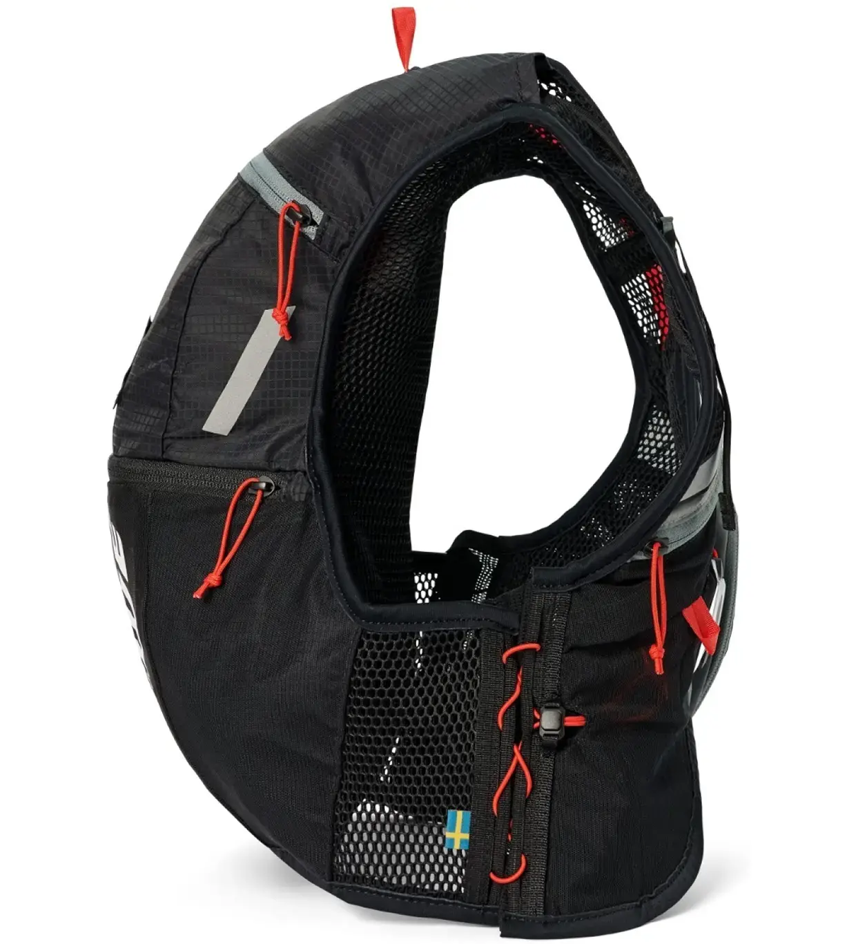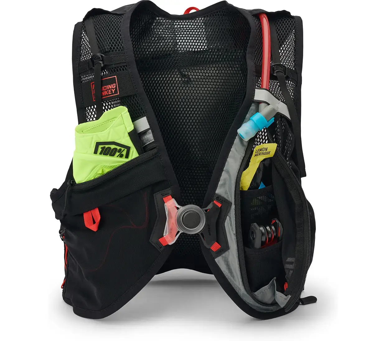 Het vest heeft vijf snel toegankelijke voorvakken voor voeding, telefoon, multitool en andere benodigdheden. Twee van deze vakken hebben een ritssluiting voor extra veiligheid. Het grote hoofdvak aan de achterkant biedt ruimte voor extra kleding en een waterzak van 2 liter, die in een interne compressiehuls met aantrekbanden zit om de hele dag op zijn plaats te blijven. Aan de onderkant van de rug bevindt zich een groot ritsvak van gaas voor reservebanden en fietsgereedschap.Met reflecterende elementen aan de voor- en achterkant en een bevestigingspunt voor een fiets-LED-licht, biedt het vest extra zichtbaarheid in het donker.