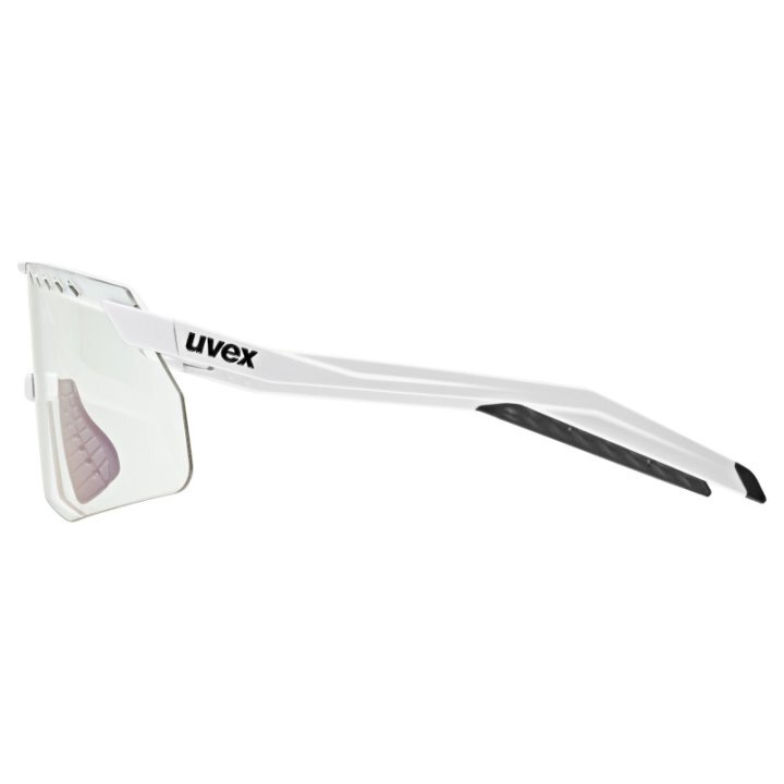 De Uvex Pace Stage S V Sport Zonnebril - White Matt/Mirror Blue is een stijlvolle zonnebril die high-tech functionaliteit combineert met een moderne uitstraling. Deze bril is speciaal ontworpen voor sporters met een smal gezicht en past zich automatisch aan veranderende lichtomstandigheden aan dankzij de uvex variomatic® lenzen. Deze fotochromische lenzen schakelen soepel tussen beschermingsniveaus (1-3) voor optimale zichtbaarheid. De uvex supravision® technologie met anti-fog coating zorgt voor maximaal condensvrij zicht, terwijl verstelbare neuspads zorgen voor een comfortabele en stevige pasvorm.