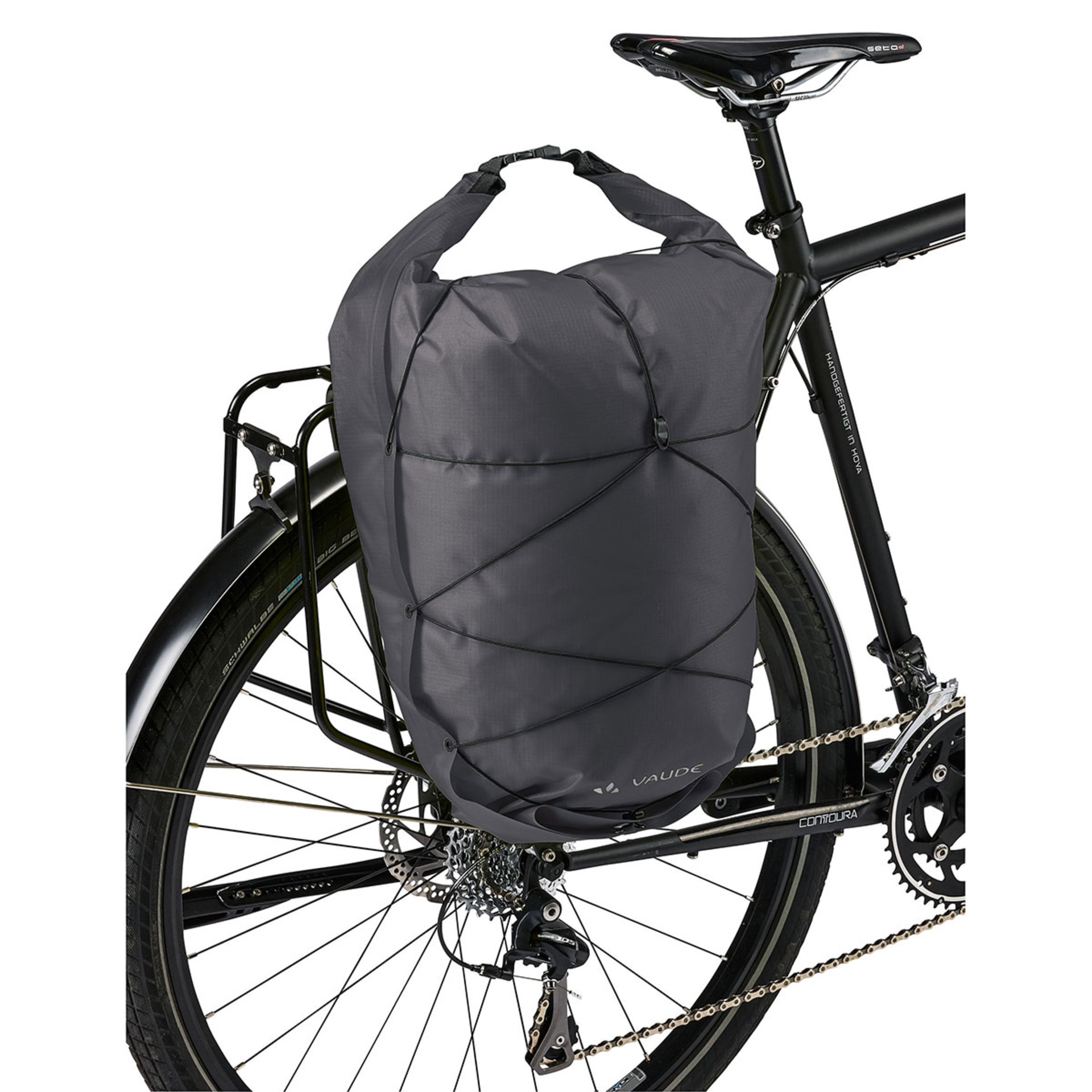 Deze Vaude Aqua Achtertas is een lichtgewicht achtertas met een inhoud van 15 liter. Deze inhoud is te comprimeren met het bagagenet. Dankzij het waterdichte materiaal, de gelaste naden en de rolsluiting zijn deze tassen zeer goed waterdicht. Waardoor al je spullen droog zullen blijven. De tas is voorzien van een groot hoofdvak en kan gemakkelijk worden bevestigd dankzij het GMR 2.0 bevestigingssysteem. Hierdoor kun je de tas ook vastzetten met een slotje. De tas is voorzien van reflecterende elementen, zodat je ook bij slechtere weersomstandigheden goed zichtbaar bent. Vaude hecht grote waarde aan het milieu en jouw gezondheid. Daarom is deze achtertas voorzien van het Green Shape label, welke staat voor een milieuvriendelijk product van duurzame materialen en gemaakt onder goede arbeidsomstandigheden. Zo is ook de coating gemaakt zonder Fluorkoolstof wat een grote impact heeft op het milieu en de gezondheid. Ook is het materiaal 100% PVC-vrij, waardoor deze minder weekmakers bevat wat beter is voor de gezondheid.