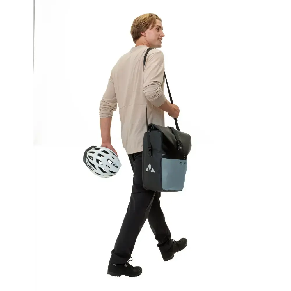 De Aqua Back Color Fietstassenset biedt dubbele opbergruimte en dubbele zekerheid tijdens al je fietsavonturen. Deze set bestaat uit twee waterdichte achtertassen met een totaal volume van 48 liter, ideaal voor fietsvakanties en dagelijks gebruik. Dankzij het innovatieve QMR 2.0 montagesysteem bevestig je de tassen eenvoudig aan vrijwel elke bagagedrager met ronde buizen van 8 tot 16 mm in diameter. De robuuste rolsluiting zorgt ervoor dat je spullen te allen tijde droog blijven. De afneembare schouderband maakt het mogelijk om de tassen comfortabel mee te nemen wanneer je niet op de fiets zit. Reflecterende elementen zorgen voor extra veiligheid onderweg. Net als de andere producten uit de Vaude Aqua Back-lijn is ook deze fietstassenset gemaakt van gerecyclede materialen en voorzien van een milieuvriendelijke Eco Finish zonder PFC’s.