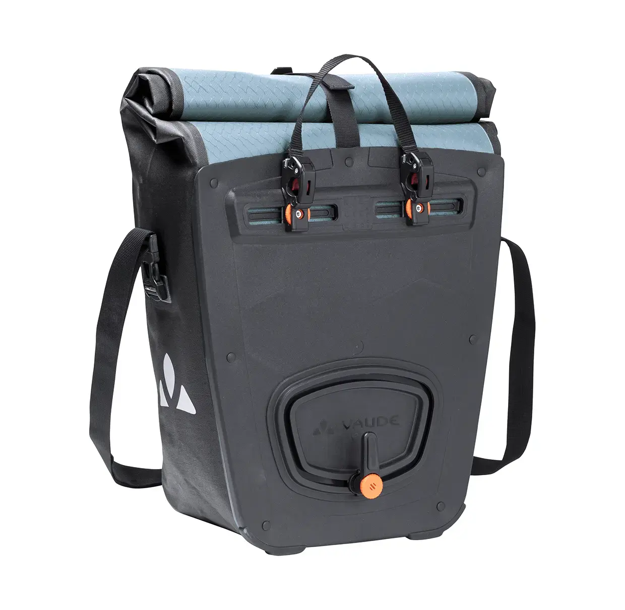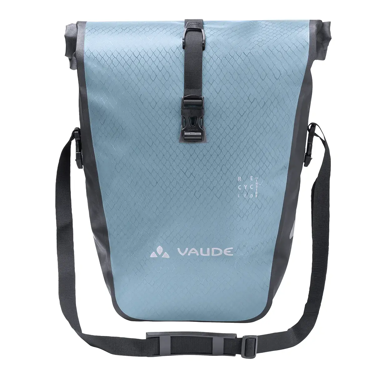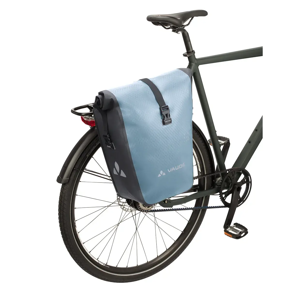 De VAUDE Aqua Back Single Recycled Achtertas heeft een inhoud van 24 liter en is perfect voor woon-werkverkeer of bikepacking. De achtertas is waterdicht door de gelaste constructie en de waterdichte rolsluiting. Hij is eenvoudig te monteren en demonteren met de gebruiksvriendelijke QMR 2.0-bevestiging. Als je je fiets parkeert en je wil je achtertas meenemen, hang je hem handig over je schouder met de afneembare schouderband. Door de reflecterende VAUDE-logo’s ben je ook goed als je bij schemerige omstandigheden op de fiets zit. Voor een lage impact op het milieu is de tas voor het grootste gedeelte gemaakt van gerecyclede materialen en is deze volledig PFC vrij.