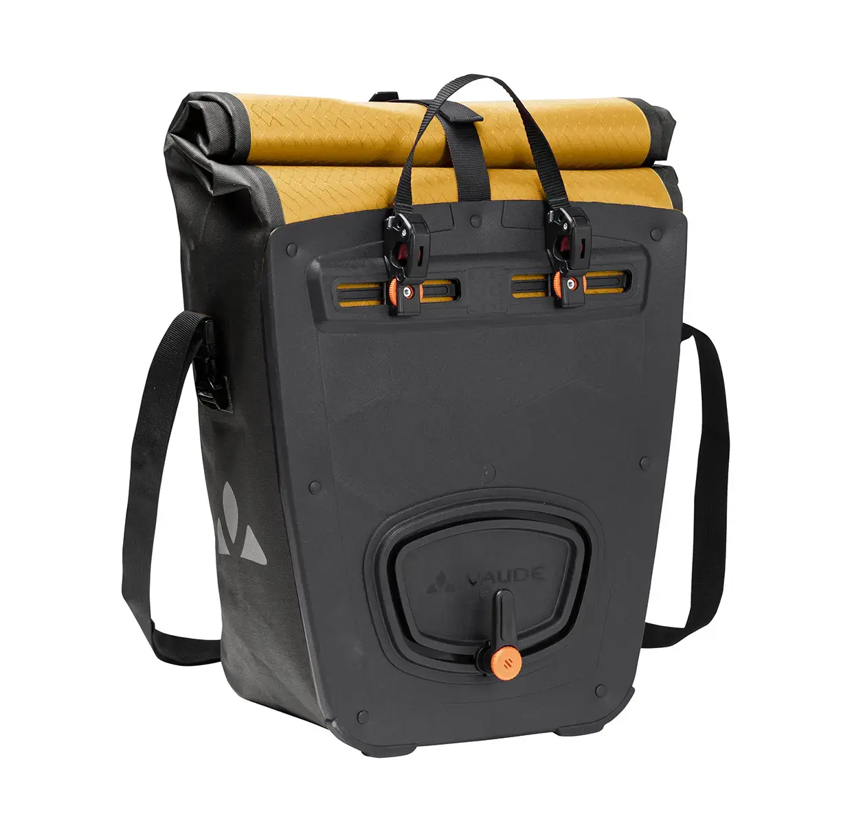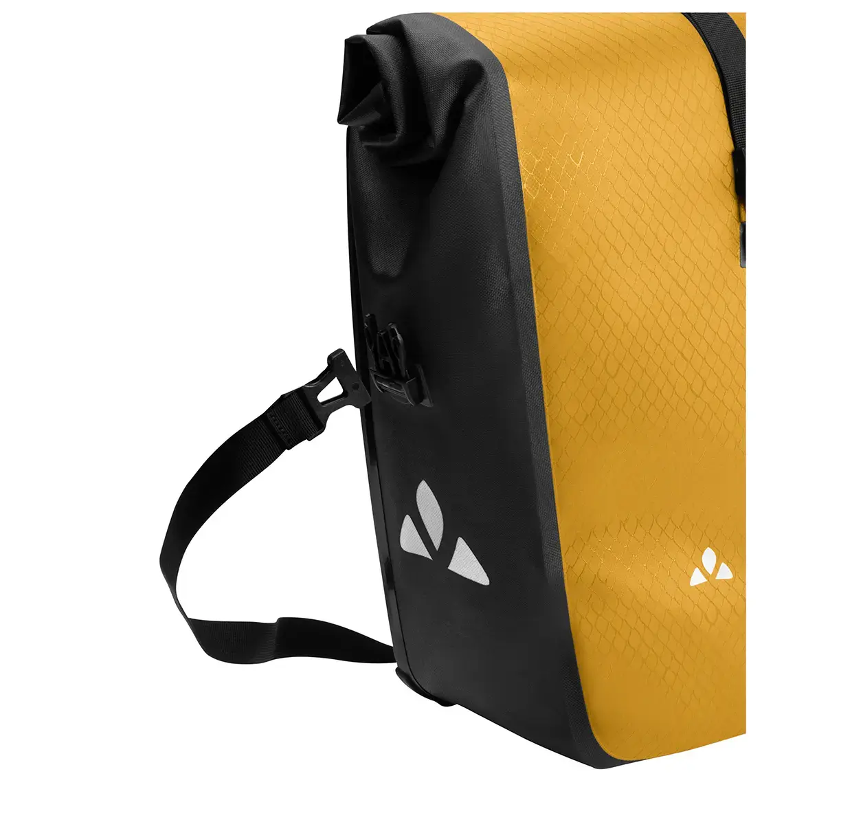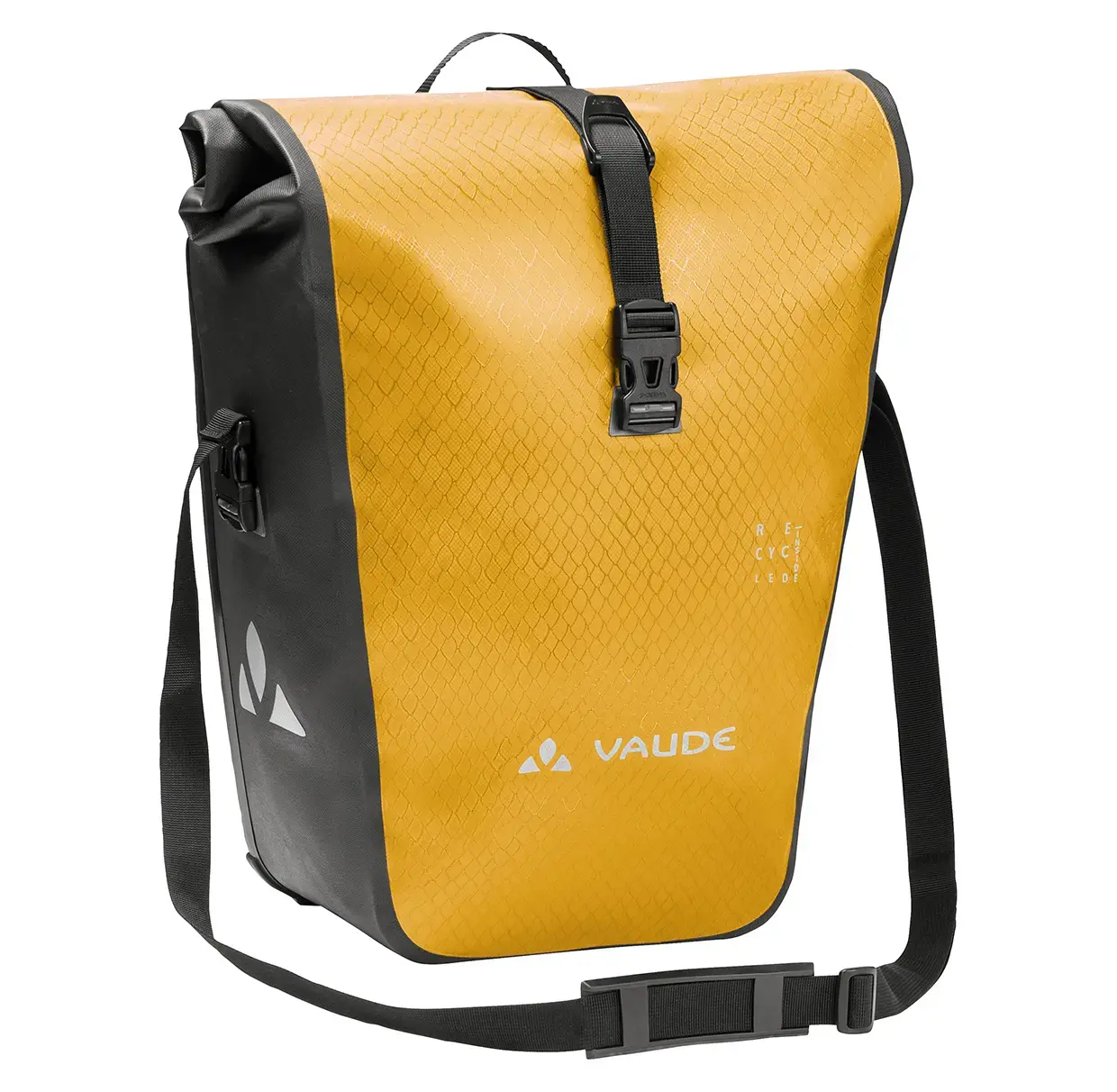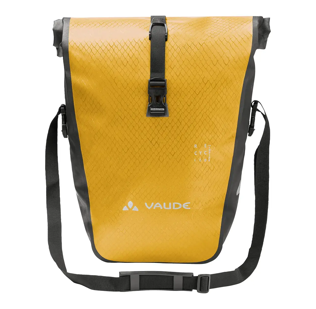 De VAUDE Aqua Back Single Recycled Achtertas heeft een inhoud van 24 liter en is perfect voor woon-werkverkeer of bikepacking. De achtertas is waterdicht door de gelaste constructie en de waterdichte rolsluiting. Hij is eenvoudig te monteren en demonteren met de gebruiksvriendelijke QMR 2.0-bevestiging. Als je je fiets parkeert en je wil je achtertas meenemen, hang je hem handig over je schouder met de afneembare schouderband. Door de reflecterende VAUDE-logo’s ben je ook goed als je bij schemerige omstandigheden op de fiets zit. Voor een lage impact op het milieu is de tas voor het grootste gedeelte gemaakt van gerecyclede materialen en is deze volledig PFC vrij.