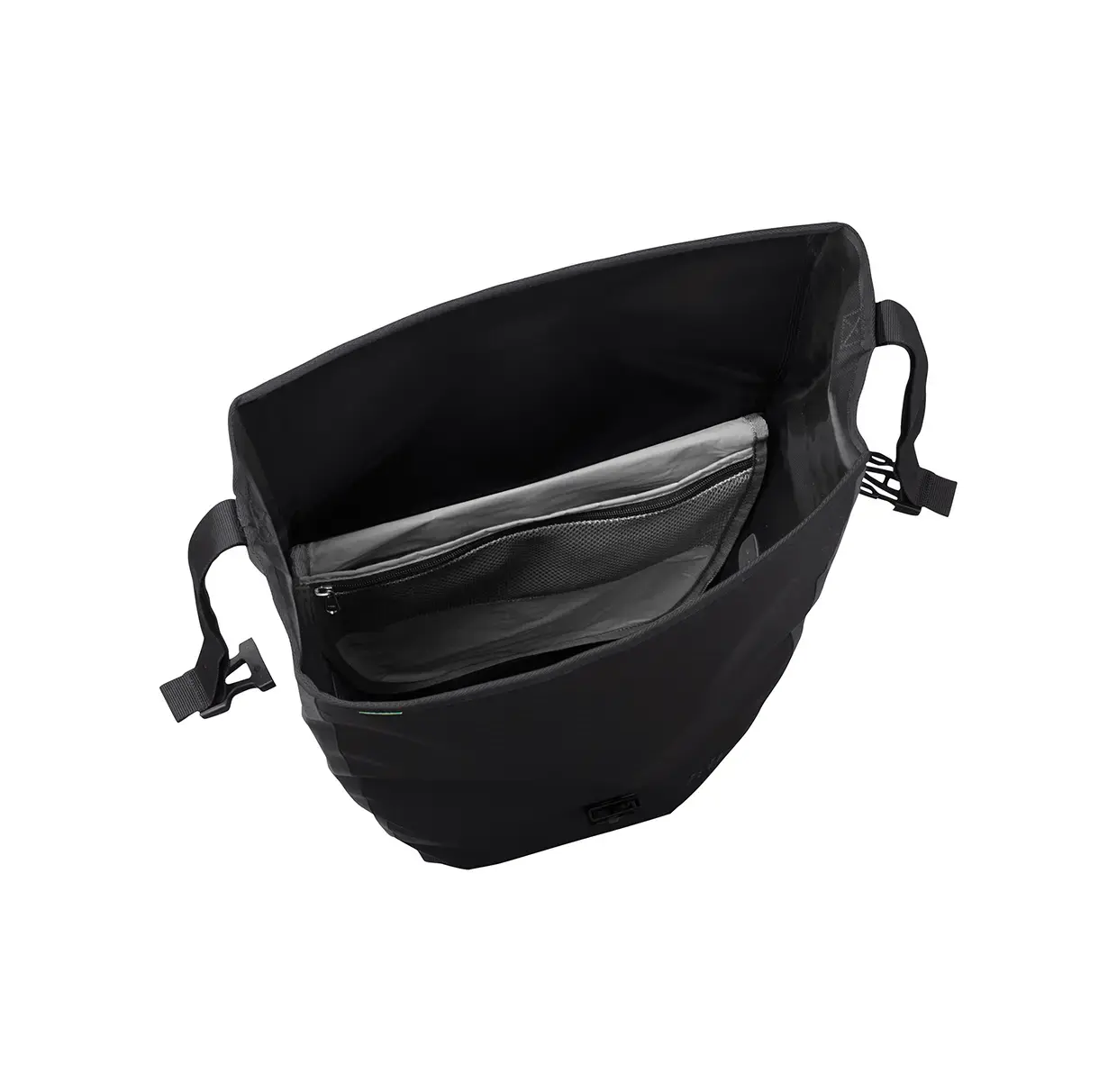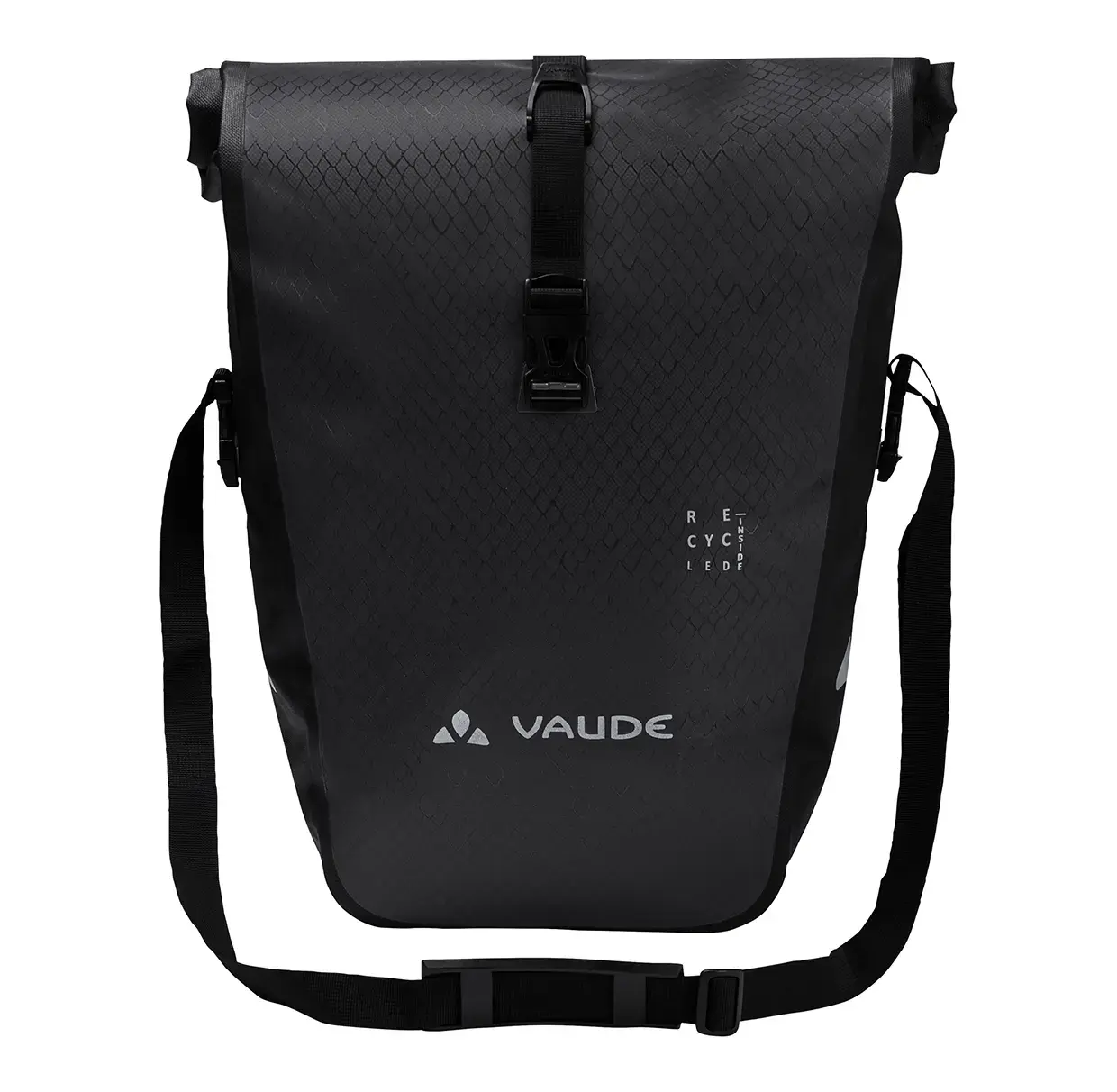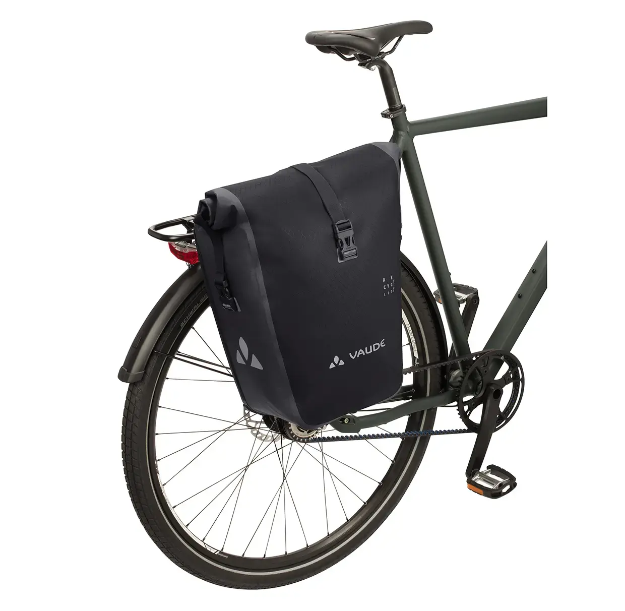 De VAUDE Aqua Back Single Recycled Achtertas heeft een inhoud van 24 liter en is perfect voor woon-werkverkeer of bikepacking. De achtertas is waterdicht door de gelaste constructie en de waterdichte rolsluiting. Hij is eenvoudig te monteren en demonteren met de gebruiksvriendelijke QMR 2.0-bevestiging. Als je je fiets parkeert en je wil je achtertas meenemen, hang je hem handig over je schouder met de afneembare schouderband. Door de reflecterende VAUDE-logo’s ben je ook goed als je bij schemerige omstandigheden op de fiets zit. Voor een lage impact op het milieu is de tas voor het grootste gedeelte gemaakt van gerecyclede materialen en is deze volledig PFC vrij.