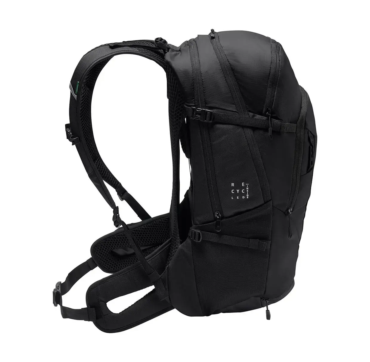 De Vaude Bike Alpin 25+5 Rugzak is een comfortabele rugzak en door zijn inhoud van 25 liter zeer geschikt voor meerdaagse tochten. De tas is namelijk nog eens uit te breide tot 30 liter. Je kunt je spullen goed organiseren in deze rugzak doordat hij beschikt over meerdere vakken: een groot compartiment, een voorvak en een vak onderaan. En een handige organizer in het hoofdvak voor bijvoorbeeld een kaart en tevens een aantal zijvakken, zoals een vak voor een minipomp. Aan de achterkant zit een ventilerend rugpaneel en heupband, waardoor de tas je rug niet direct raakt. Hierdoor gaat je rug niet zo snel zweten! Ook blijft hierdoor in combinatie met de heup- en borstband de tas stil op je rug zitten, waardoor je geen last van de tas hebt tijdens het fietsen en mountainbiken. De rugzak wordt geleverd inclusief regenhoes, dus ook bij een regenbui blijven je spullen droog. Wil je een fietshelm, fietspomp of fietslampje meenemen? Die kun je eenvoudig aan de rugzak verbinden! Ook is de tas te comprimeren middels de compressie straps aan de zijkant en is er een opening voor een waterzak.