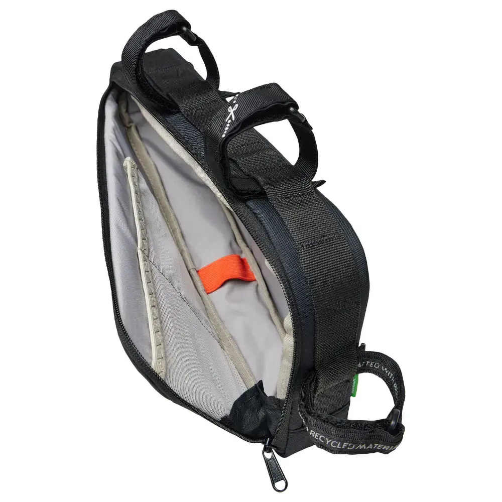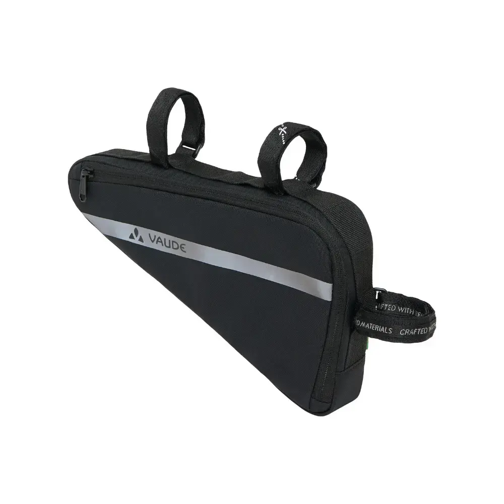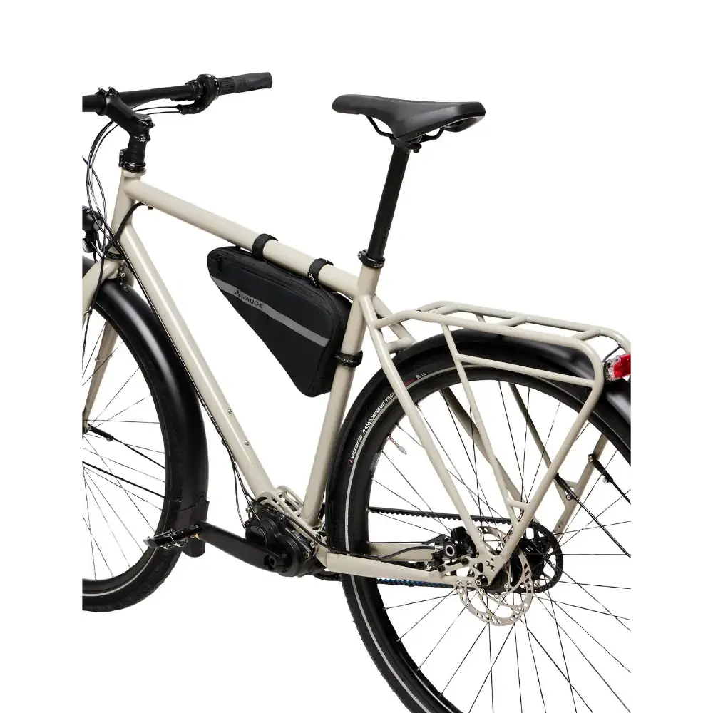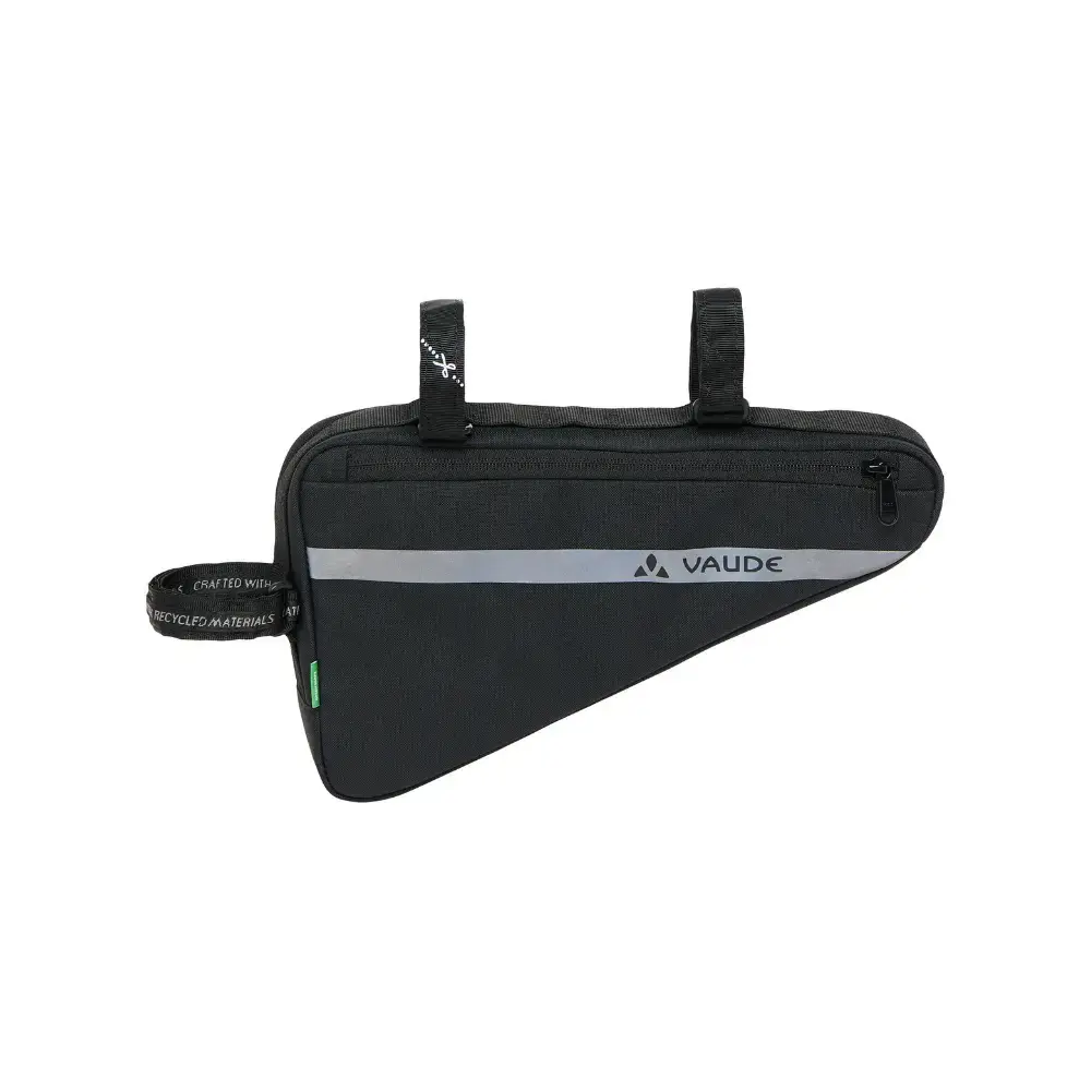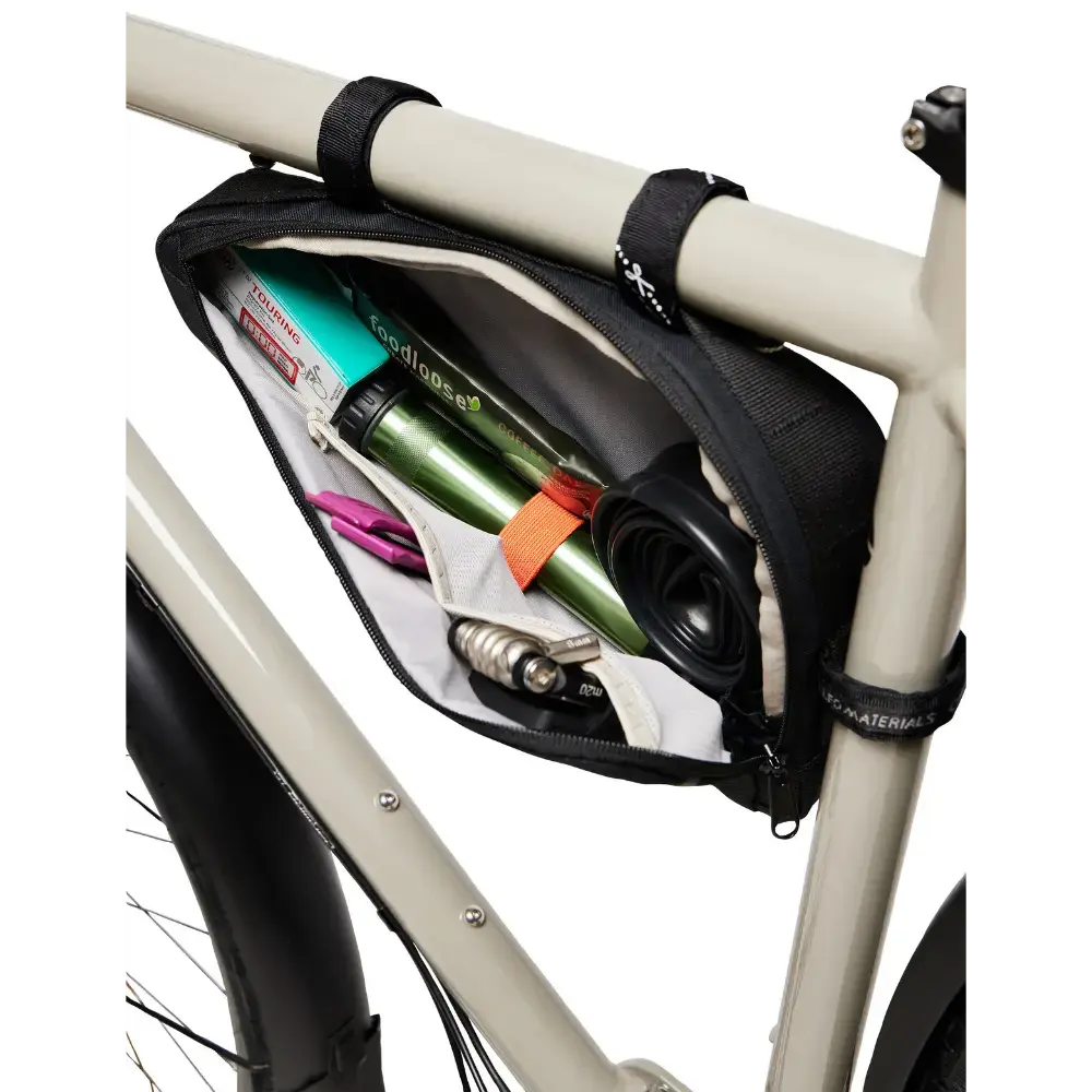 De Frame Bag L Frametas van Vaude biedt met een inhoud van 2 liter voldoende opbergruimte voor gereedschap, een mini-pomp, energierepen en zelfs een windjack. De tas is eenvoudig te bevestigen met drie klittenbanden tussen de bovenbuis en de zadelbuis. De praktische indeling met een hoofdvak, interne organizer en een extern vak met rits zorgt ervoor dat je je spullen netjes kunt opbergen. Het duurzame ontwerp en de reflecterende elementen maken deze frametas tot een ideale metgezel voor langere fietstochten. De tas draagt het Vaude Green Shape-label en is daarmee een milieuvriendelijke keuze.