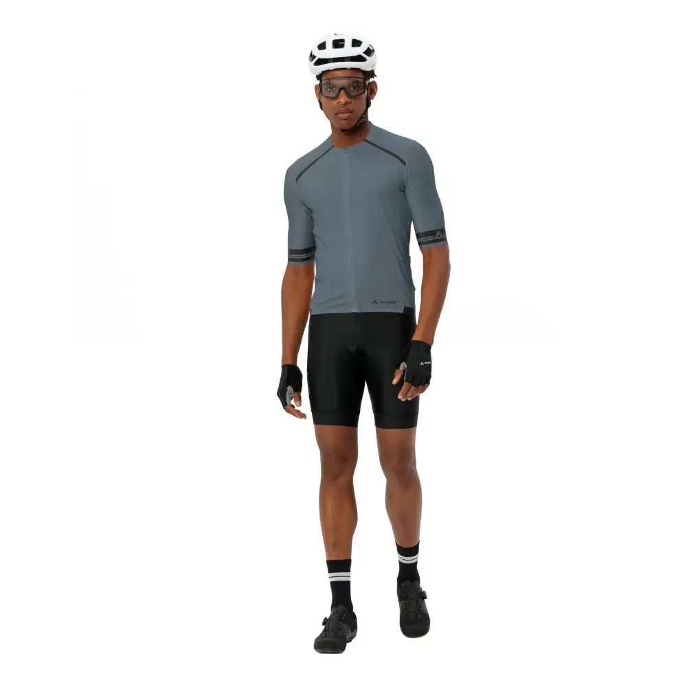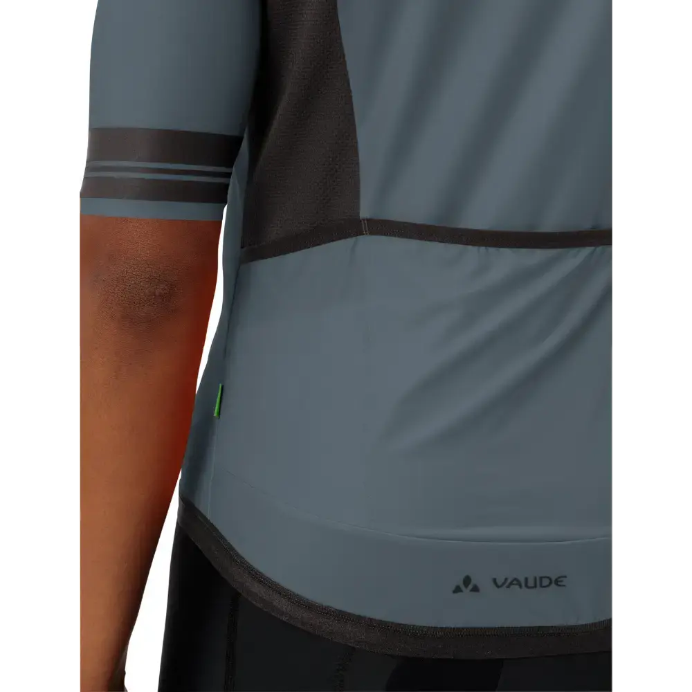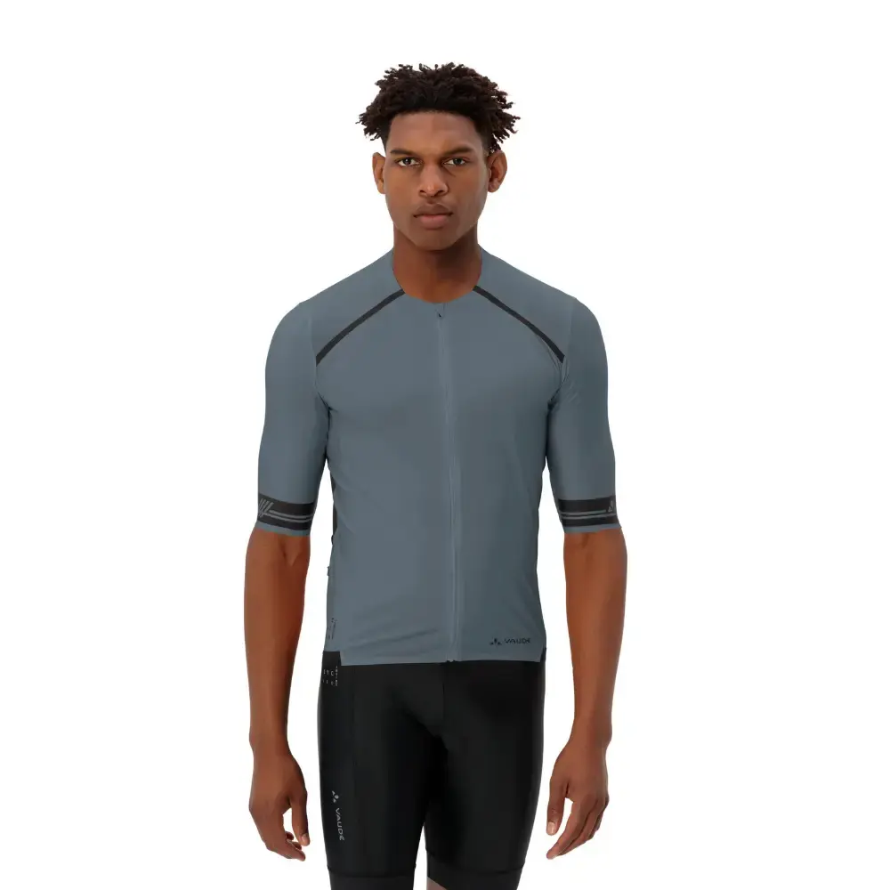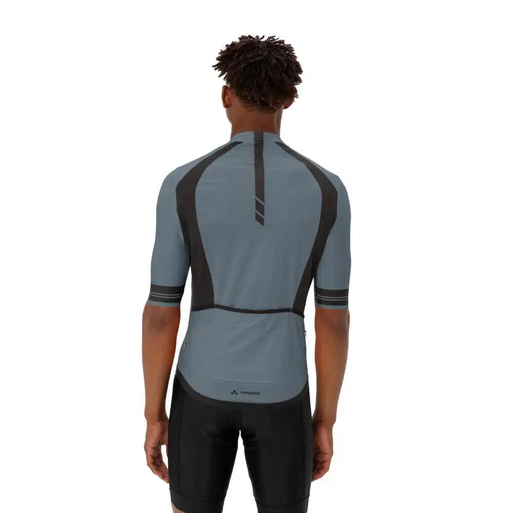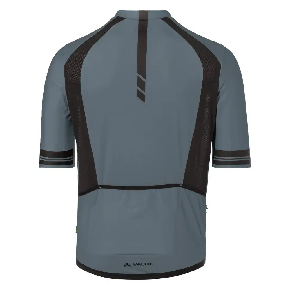 Het Vaude Furka FZ II Fietsshirt Korte Mouwen voor heren biedt ambitieuze wielrenners het perfecte shirt voor comfort en performance. Het wielershirt heeft een nauwsluitende pasvorm met een langere achterkant en kortere voorkant, ideaal voor een aerodynamische houding op de fiets. Het shirt is gemaakt van ultralichte, zeer elastische materialen die als een tweede huid aanvoelen. De geïntegreerde mesh-panelen zorgen voor extra ventilatie, terwijl de gesiliconiseerde tailleband en manchetten het shirt stevig op zijn plek houden. De drie achterzakken, inclusief een klein vakje met ritssluiting, bieden voldoende ruimte voor essentiële spullen tijdens lange ritten. Dit fietsshirt is milieuvriendelijk geproduceerd in Europa en draagt het Vaude Green Shape-label.