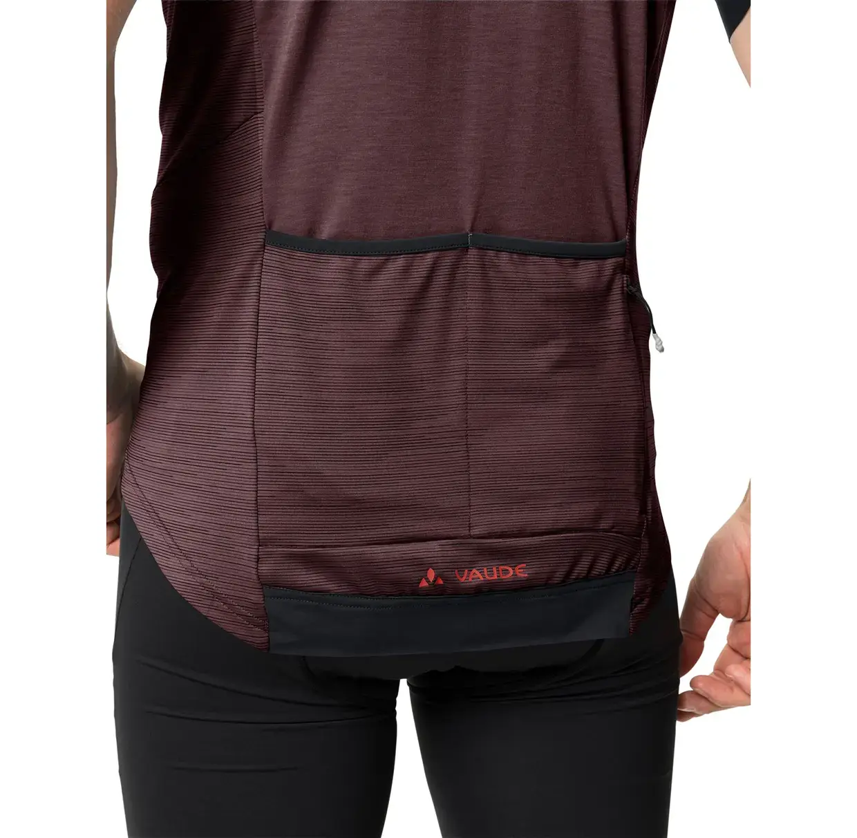 Het Vaude Kuro FZ Fietsshirt is speciaal ontwikkeld voor de fantieke gravelaar. Met de 2 achterzakken kan je voldoende proviand of reservemateriaal meenemen, en in het ritszakje kan je waardevolle spullen zoals je sleutels opbergen. Voor maximaal comfort zijn de manchetten afgewerkt met Lycra. Het ademend vermogen van het shirt wordt extra verhoogd door de gebruikte wol en strategisch geplaatste mesh panelen.