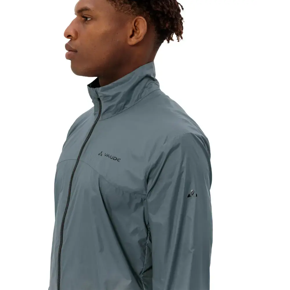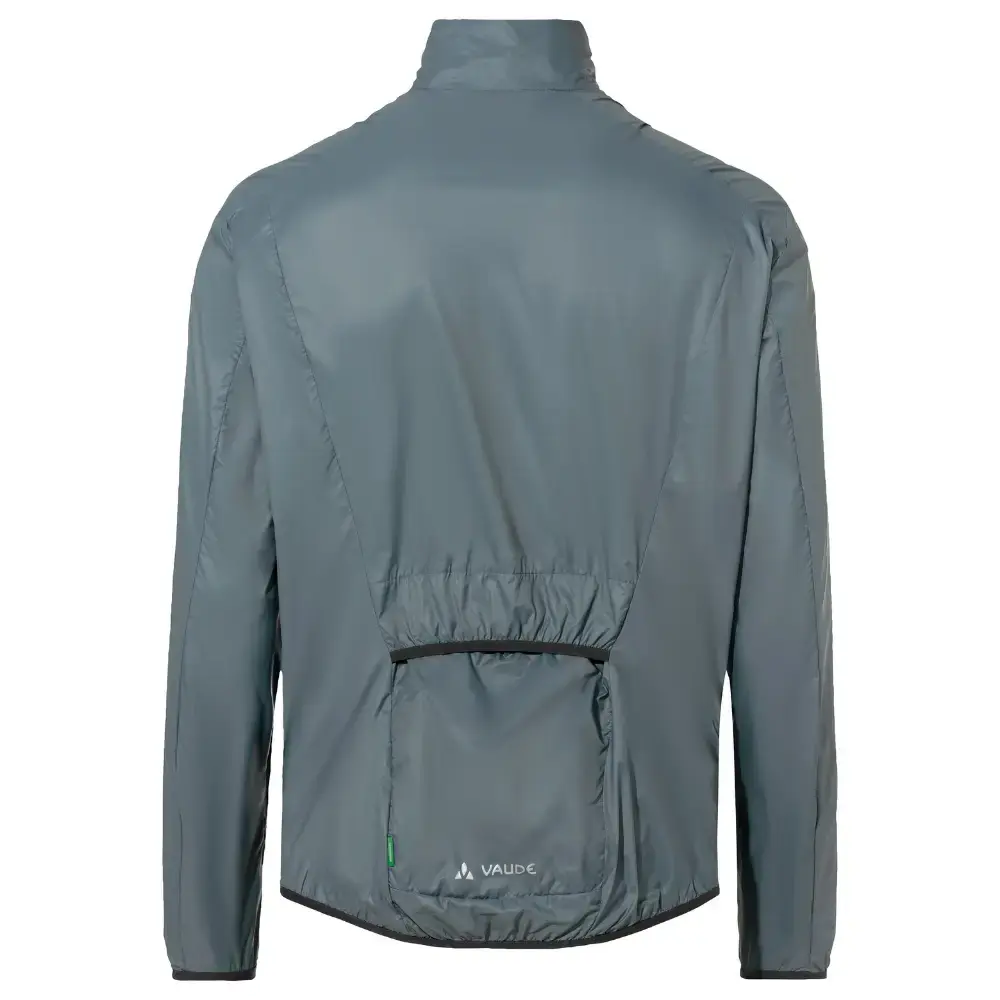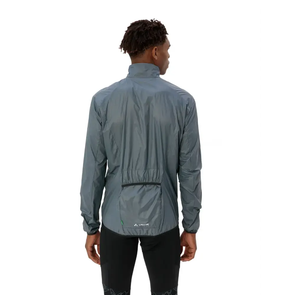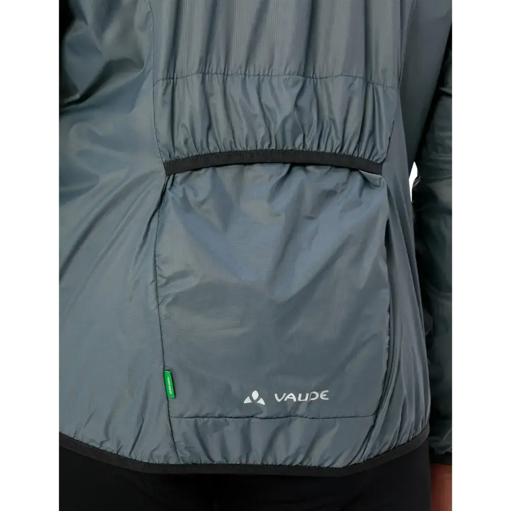 Dit windjack van Vaude is superlicht, voor alle fietssport-varianten ontwikkeld windjack. De voorgevormde, langere mouwen en de fietsspecifieke langer gesneden achterkant zijn van elastische afwerkingen voorzien. Op de achterkant van dit windjack is daarnaast een open zak geplaatst, waarin het jack klein en ruimtebesparend kan worden opgeborgen. Dit voor 100% uit gerecycled polyamide bestaande windjack voor heren is met Eco Finish PFC-vrij water- en vuilafstotend afgewerkt, ademend en sneldrogend.