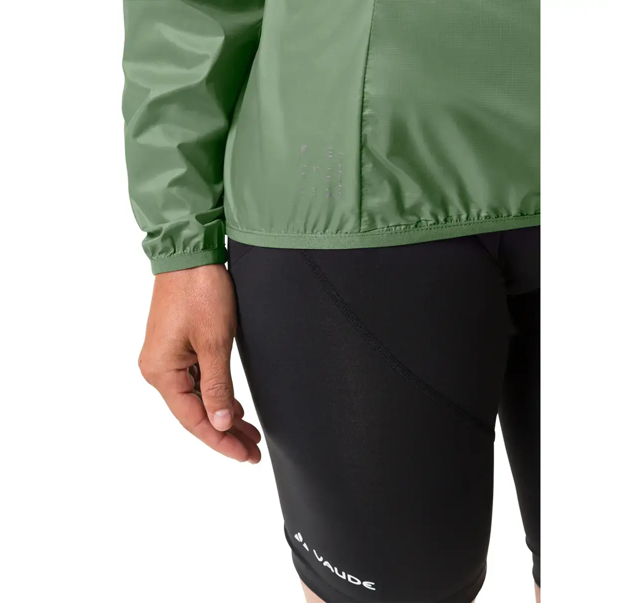 Dit windjack van Vaude is superlicht, voor alle fietssport-varianten ontwikkeld windjack. De voorgevormde, langere mouwen en de fietsspecifieke langer gesneden achterkant zijn van elastische afwerkingen voorzien. Op de achterkant van dit windjack is daarnaast een open zak geplaatst, waarin het jack klein en ruimtebesparend kan worden opgeborgen. Dit voor 100% uit gerecycled polyamide bestaande windjack voor heren is met Eco Finish PFC-vrij water- en vuilafstotend afgewerkt, ademend en sneldrogend.