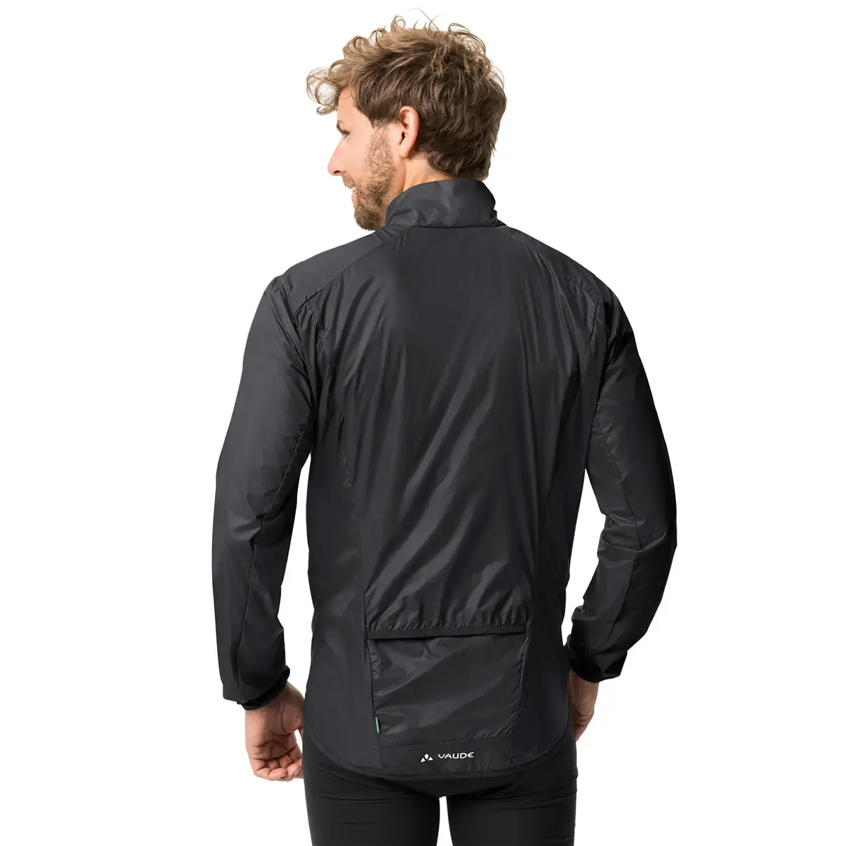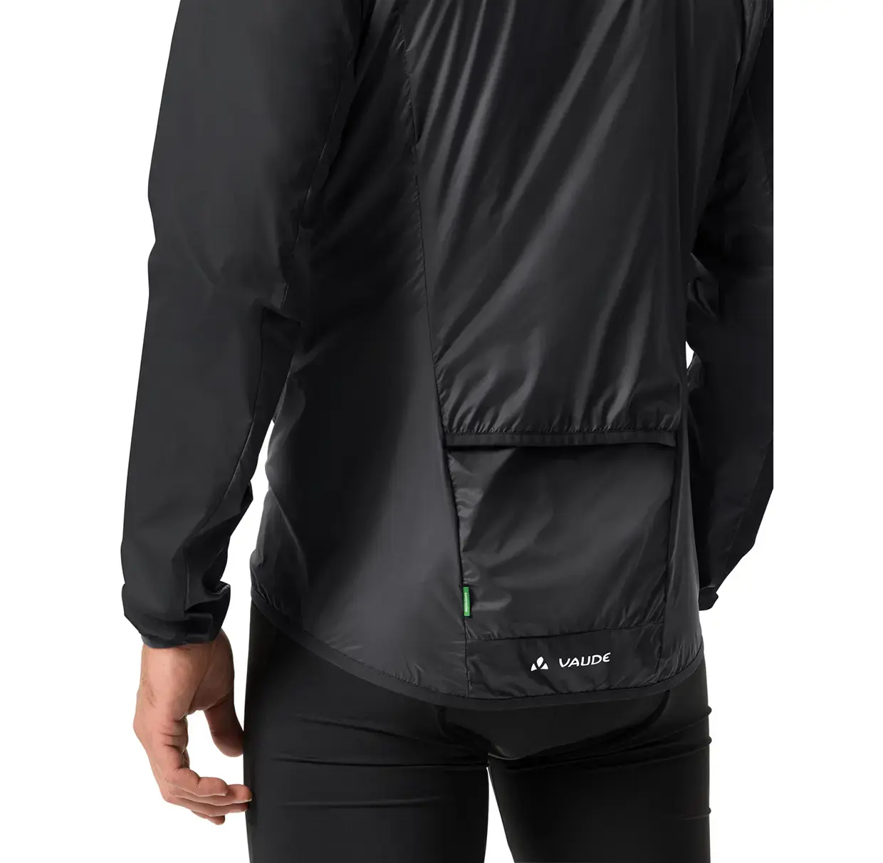 Dit windjack van Vaude is superlicht, voor alle fietssport-varianten ontwikkeld windjack. De voorgevormde, langere mouwen en de fietsspecifieke langer gesneden achterkant zijn van elastische afwerkingen voorzien. Op de achterkant van dit windjack is daarnaast een open zak geplaatst, waarin het jack klein en ruimtebesparend kan worden opgeborgen. Dit voor 100% uit gerecycled polyamide bestaande windjack voor heren is met Eco Finish PFC-vrij water- en vuilafstotend afgewerkt, ademend en sneldrogend.