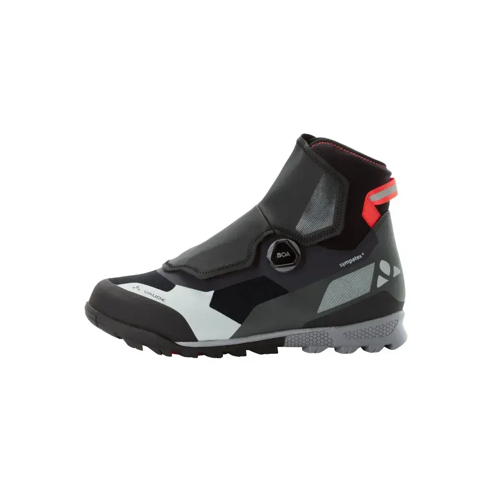 De Minaki III STX Mountainbikeschoenen zijn de ideale metgezel voor winterse avonturen op de mountainbike. Of je nu door besneeuwde trails rijdt of dagelijks naar je werk fietst, deze schoenen bieden optimale bescherming tegen kou en vocht. Het waterdichte en ademende Sympatex®-membraan, gecombineerd met een verwarmende Sherpa fleece voering en Primaloft® Footwear warmtevoering, zorgt ervoor dat je voeten warm en droog blijven, zelfs bij ijzige temperaturen. De robuuste buitenstof met Eco Finish afwerking is PFC-vrij en water- en vuilafstotend, terwijl de slijtvaste neus- en hielkap extra bescherming bieden. De schoenen zijn uitgerust met een Boa L6 vetersluitsysteem en klittenbandsluiting, waardoor je ze gemakkelijk kunt aanpassen, zelfs met handschoenen aan. De rubberen loopzool met nylon schacht zorgt voor een optimale krachtoverbrenging en grip, zowel op als naast de fiets. Met de intrekbare pedaalplaat loop je comfortabel, ook zonder click-pedalen.
