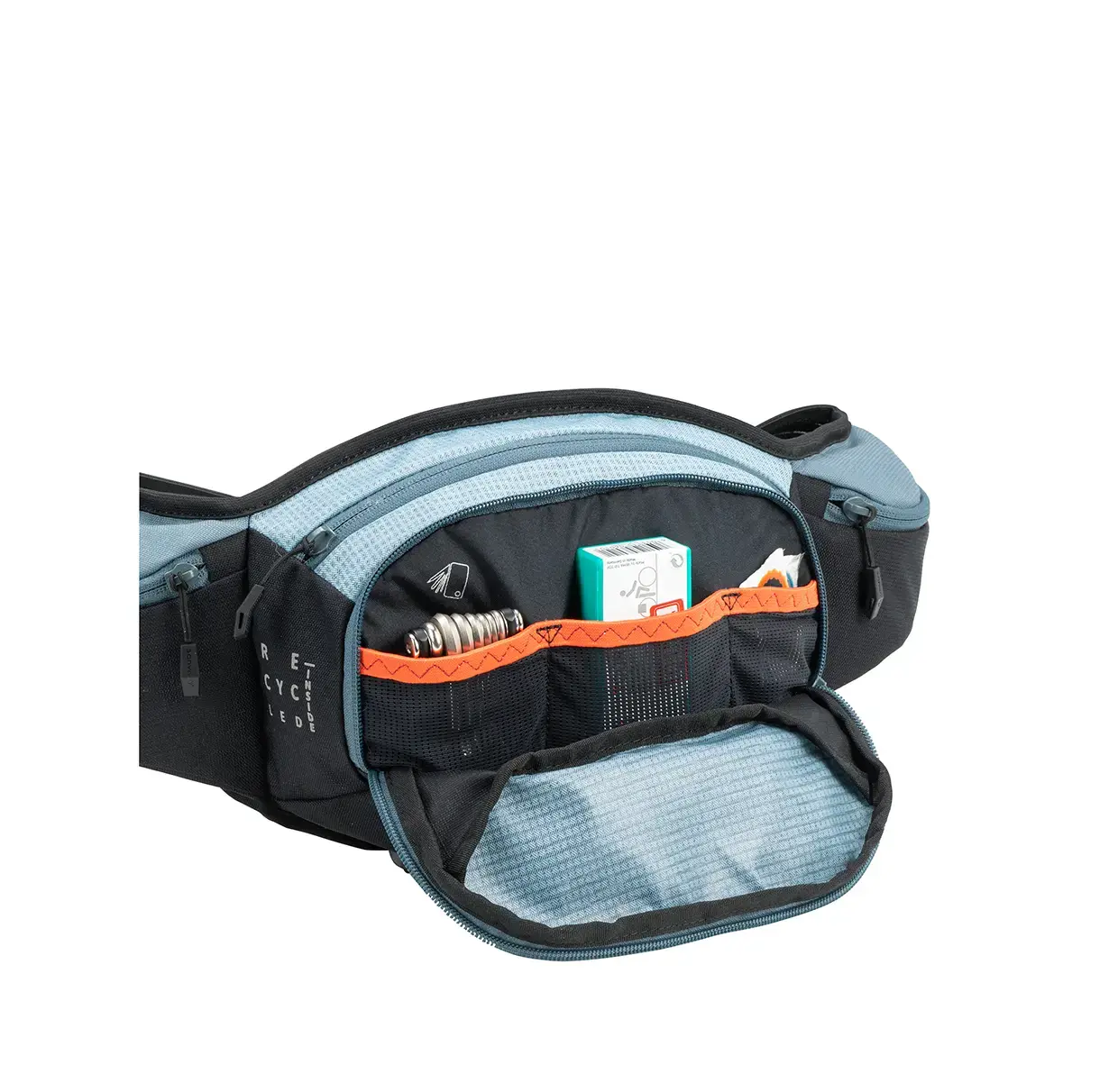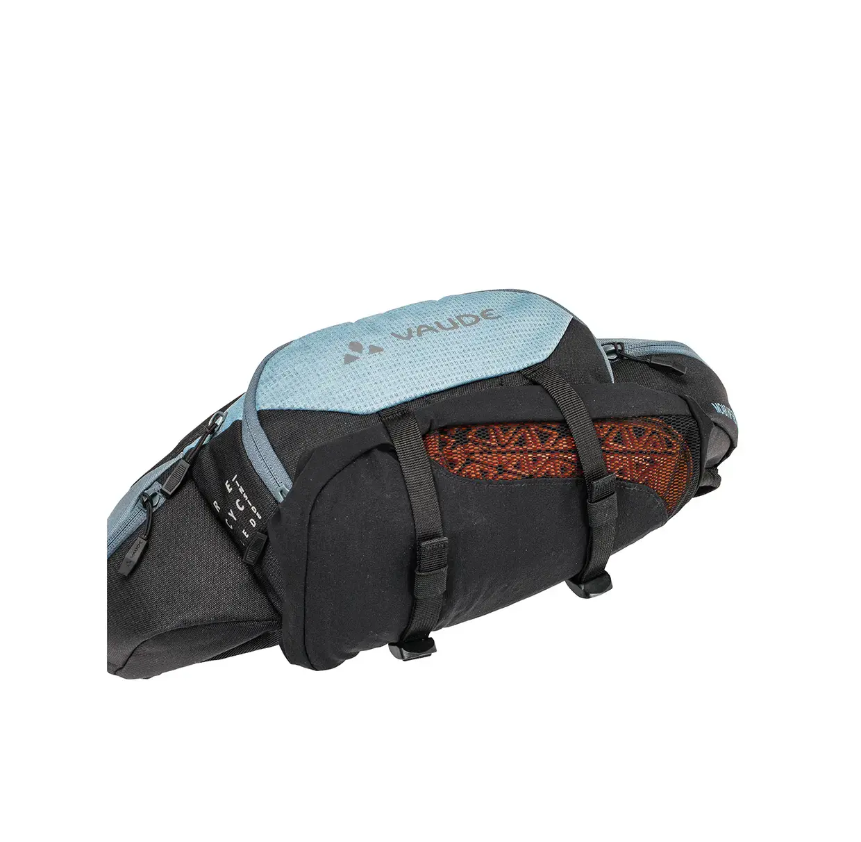 De Vaude Moab Hip Pack 3 Heuptas is geschikt voor een breed scala aan bikers. Als je een minimaal aantal spullen wilt meenemen kun je de heuptas goed gebruiken. Als je juist alle opbergruimte op de fiets wil gebruiken kan de heuptas net dat extra beetje ruimte bieden. Ongeacht of het nu een bikepackingtocht of een endurorit is: deze ultieme accessoire wil je niet meer missen. Deze sportief gebogen heupgordelzak past zich dankzij de elastische heupriem aan elk figuur en elke rijpositie aan. Comfortabel gepolsterde oppervlakken voorkomen drukpunten op de rug. De tas heeft twee met ritssluiting af te sluiten zijzakken sluiten perfect rond de heupen. Het hart van de tas is het middelste voorvak met een ingenieuze indeling. In de voorklep bevindt zich een gaasvak met ritssluiting, Alle gebruikte, bluesign®-gecertificeerde materialen bestaan uit gerecycled polyester.
