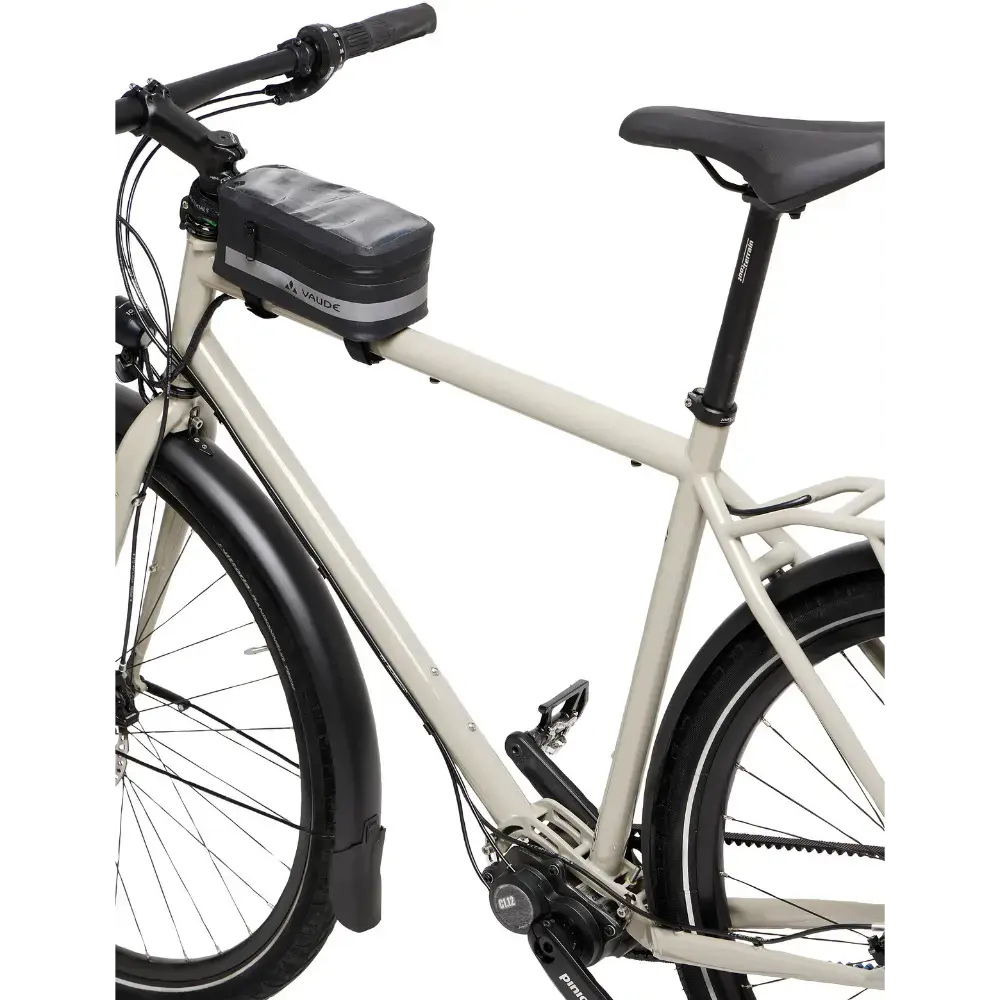 De Phone Bag Proof Frametas van Vaude is een waterdichte toptube tas die perfect is voor het veilig opbergen van je mobiele telefoon en andere essentiële items tijdens het fietsen. Dankzij de waterdichte, transparante sleeve in het deksel kun je je navigatieapparaat (tot 17 x 8 x 1 cm) eenvoudig bedienen zonder je telefoon uit de tas te halen. De tas is voorzien van een praktische klittenbandbevestiging en biedt ook de mogelijkheid tot schroefmontage voor extra stevigheid. De Vaude Green Shape-label geeft de garantie dat dit product op een duurzame en milieuvriendelijke manier is geproduceerd.