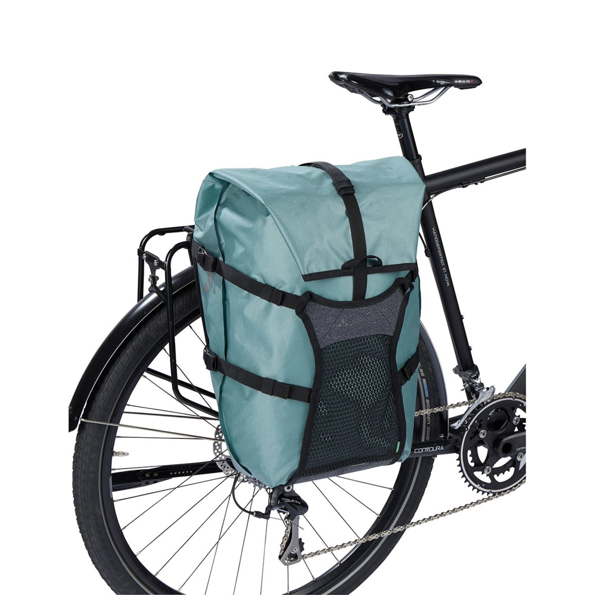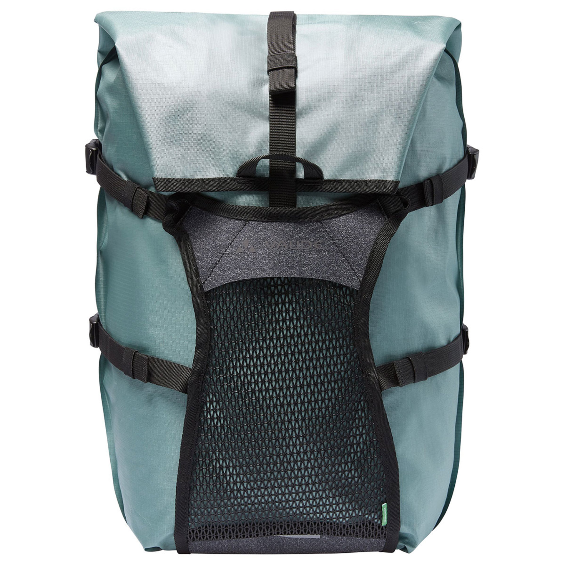 De Vaude Trailcargo Achtertas is een lichtgewicht, waterdichte pakezel! Deze multifunctionele fietstas biedt 21 liter ruimte en kan zowel gebruikt worden dagelijks gebruik in de stad als een uitgebreide bikepackingtrip. Deze fietstas zet je veilig vast met de bekroonde, afsluitbare QMR-haken. In het hoofdcompartiment zit een klein plat vak met ritssluiting waarin je documenten, portemonnee of ander waardevolle spullen veilig in meeneemt. Aan de voorkant kan onder de flexibele flap een pakket, dat niet meer in de tas past, netjes met 2 compressiebanden worden vastgezet. Ideaal voor bijvoorbeeld een tent of natte kleding. Enkele reflecterende prints zorgen voor een betere zichtbaarheid. Zowel de waterdichte packsack als ook de front-flap bestaan voor 100% uit gerecyclede materialen. De Trailcargo wordt milieuvriendelijk van duurzame materialen gemaakt.
