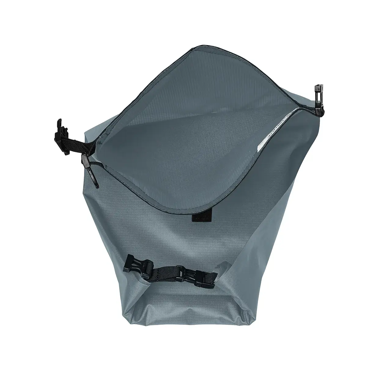 De Trailfront II Voortas van Vaude is de perfecte stuurtas voor avontuurliefhebbers! Als je bij je trip lekker veel spullen mee wilt nemen is deze waterdichte, opvouwbare stuurtas de juiste keuze. De packsack met 13 liter is van beide zijden toegankelijk en middels wikkelsluiting waterdicht comprimeerbaar. Daarmee is de tas uitstekend geschikt voor lichte bepakking zoals een slaapzak. Met packriemen aan de bovenkant kan extra bagage en zelfs een tent aan de buitenkant worden bevestigd. De bevestiging van de packsack past op alle mountainbikesturen, maar kan met een breedte van 30cm ook gebruikt worden met alle gangbare gravel- of racefietssturen. Zijn eenvoudige montage vindt plaats via het stuur en de balhoofdbuis. Door de praktische afstandshouders en de in de breedte verstelbare bevestigingen wordt er altijd voldoende vrijheid voor de rem- en, schakelkabels gegarandeerd. De schouderband zorgt dat je hem ook makkelijk mee kunt nemen als je de tas van de fiets haalt. Hij doet ook heel veel werk op het gebied van milieubescherming, want zowel de bevestigingen als de packsack bestaan voor 100% uit gerecyclede materialen.