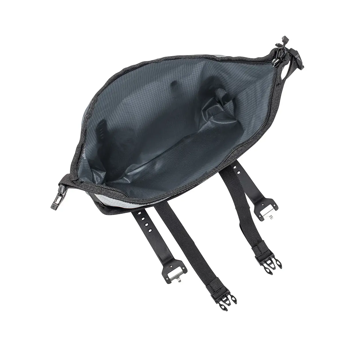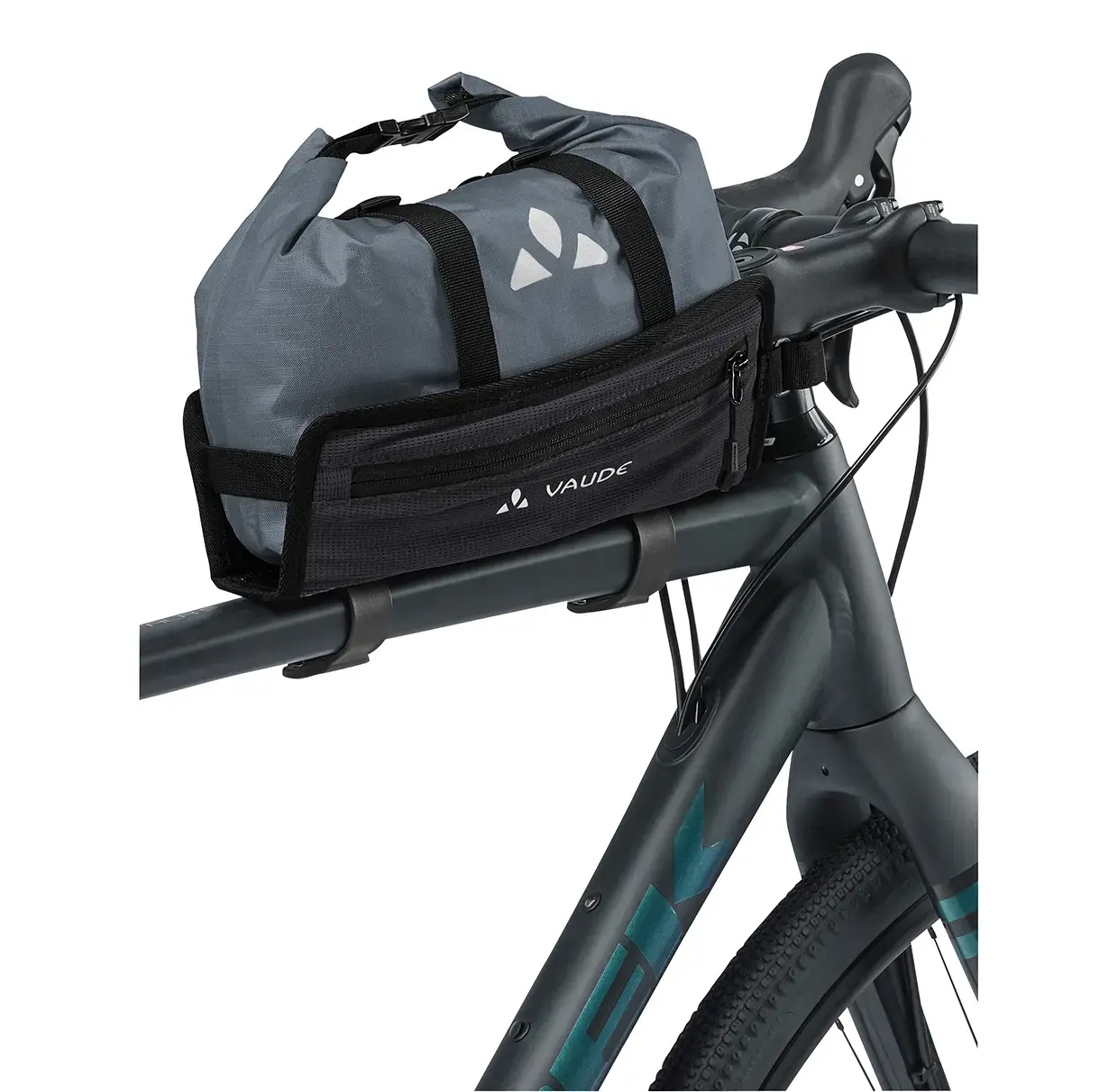 De Vaude Trailguide II Bovenbuistas heeft een inhoud van 5 liter en zorgt ervoor dat je kleine spullen veilig kunt meenemen op de fiets. De tas is perfect voor artikelen waar je snel bij wilt kunnen tijdens het fietsen. Zo kun je er je reisdocumenten, smartphone of portemonnee in meenemen. De houder van de Trailguide wordt met 2 banden aan de bovenbuis bevestigd en met een klittenband aan de stuurbuis vastgezet om wegglijden te voorkomen. Twee kleine elastische zijvakken houden repen of een gelletje binnen handbereik. Als er tijdens een stop snel iets moet worden gekocht, kan de packsack snel uit de houder worden gehaald en met de meegeleverde schouderriem worden omgehangen. De bovenbuistas is niet alleen een praktische metgezel voor bikepacking. Hij doet ook heel veel werk op het gebied van milieubescherming, want zowel de bevestigingen als de packsack bestaan voor 100% uit gerecyclede materialen.