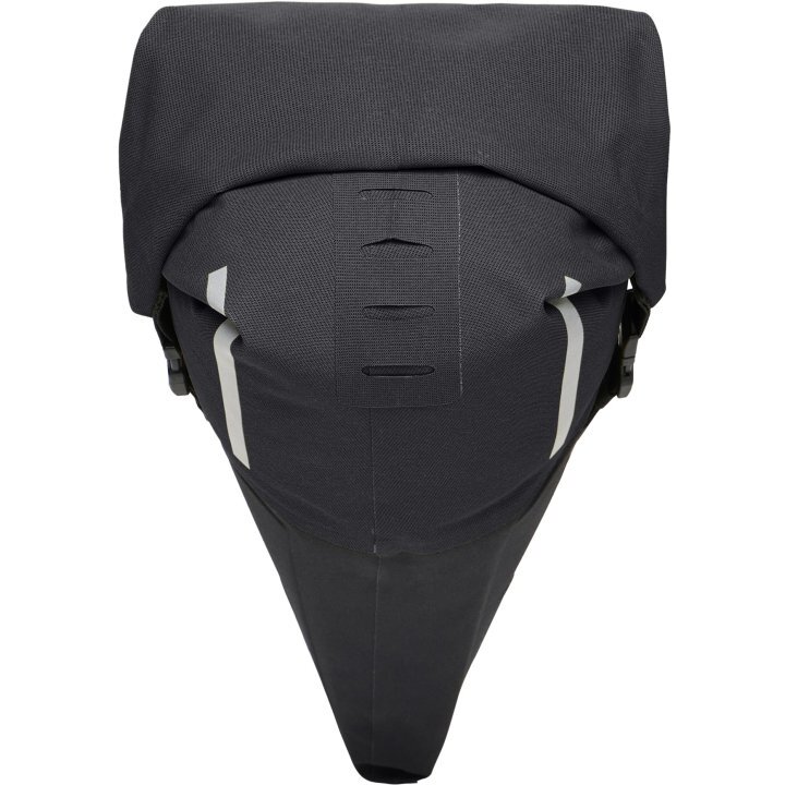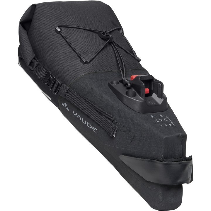 De compacte, waterdicht gelaste Trailsaddle M zadeltas heeft een volume van zes liter en biedt veel ruimte voor een bikepacking-trip in het weekend. De rolsluiting en het handige ventiel maken het mogelijk om de inhoud optimaal te comprimeren. De tas wordt onder het zadel gemonteerd met de meegeleverde KLICKfix® Contour Saddle Adapter, die met één klik zorgt voor een eenvoudige montage en even snelle demontage. Een stevige klittenbandriem zet de zadeltas extra vast aan de zadelpen. Een wind- of regenjack kan snel worden opgeborgen in de bagagelussen aan de bovenzijde. Voor een complete weekenduitrusting zonder bagagedrager kan de Trailsaddle Compact M perfect worden gecombineerd met de Trailfront Compact stuurtas.