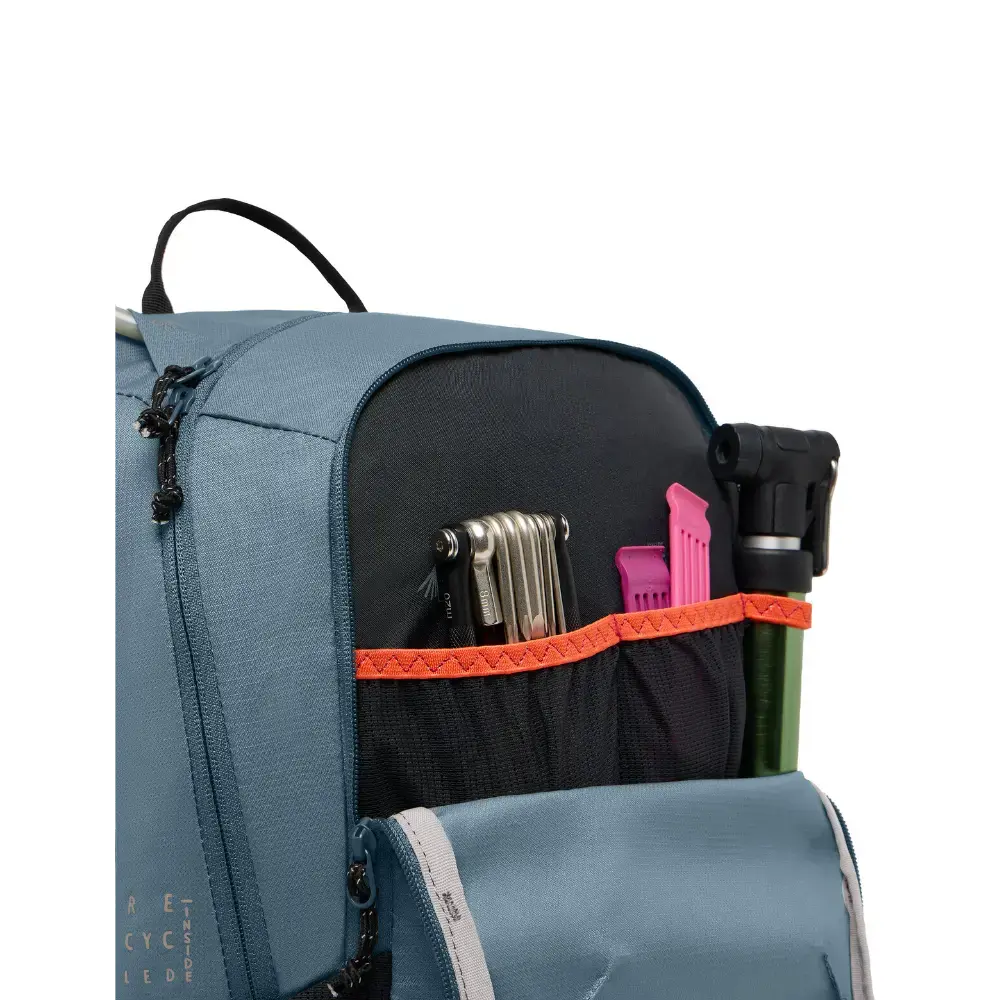 De Vaude Trailvent 10 Fietsrugzak is perfect voor korte mountainbiketochten. Het Aeroflex 3D-rugsysteem zorgt voor uitstekende ventilatie en comfort, terwijl de verstelbare ruglengte en gepolsterde banden zich perfect aan jouw lichaam aanpassen. De slimme vakindeling biedt ruimte aan een hydratatiezak, waardevolle spullen, gereedschap en voeding. Mesh zijvakken zorgen voor snelle toegang tot kleine items. Reflecterende elementen, een geïntegreerde regenhoes en een helmhouder maken deze rugzak helemaal af. Het Vaude Green Shape-label staat garant voor een milieuvriendelijk, functioneel product van duurzame materialen.