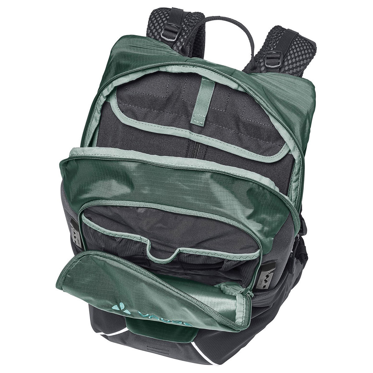 De Tremalzo 10 is een kleine, compacte rugzak die ideaal is voor de korte tot middellange fietstochten. Als alternatief ook voor zomerse, ambitieuze All Mountain-Cross Countrytochten geschikt, waarvoor de uitrusting zo klein mogelijk moet blijven. Hij scoort met een doordachte vakindeling, een organizervak aan de voorzijde, reflecterende elementen en plaats voor fietspomp, gereedschap en drinkzak. Mesh-zijvakken bieden daarnaast opbergruimte voor handschoenen, gels of repen. Het Aeroflex 3D-draagsysteem biedt een uitstekend draagcomfort en een optimale rugventilatie. De rugzak wordt volgens de strenge bluesign®-milieucriteria geproduceerd. Het VAUDE Green Shape-label staat voor een milieuvriendelijk, functioneel product uit duurzame materialen.