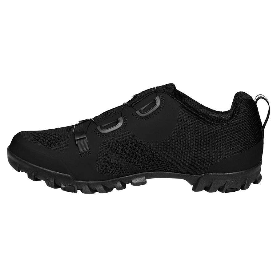De Vaude TVL Skoj Mountainbikeschoenen bieden goede grip op je pedalen dankzij de SUPtraction® R20 zool van 20% gerecycled rubber, in zowel droge als vochtige omstandigheden. De tussenzool is versterkt met nylon voor een goede krachtoverbrenging op je pedalen. De gemiddelde stijfheid (V-Flow 5) zorgt voor efficiënte krachtoverdracht op de pedalen en een aangename afrolbeweging bij het wandelen. De neus- en hielkap zijn gemaakt van zeer stevig materiaal voor extra bescherming. Dankzij de Boa L6 draaisluiting sluiten de schoenen perfect aan om je voeten.