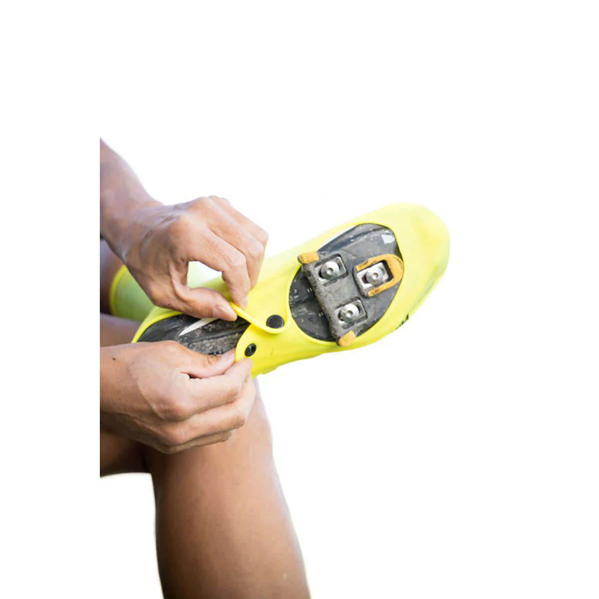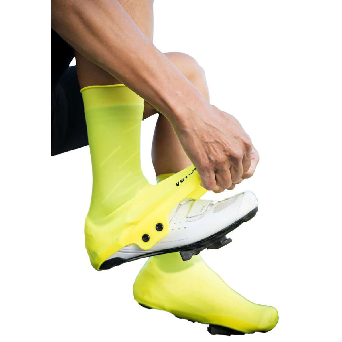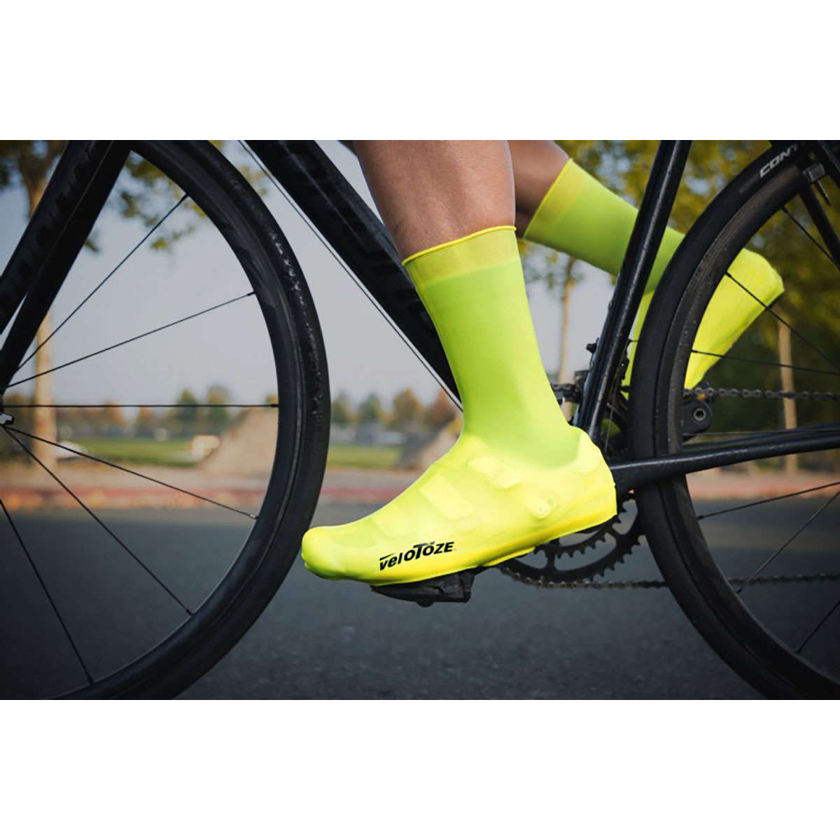 Deze siliconen overschoenen van VeloToze zijn ontworpen om je voeten warm en droog te houden in koud, nat weer. Het water- en winddichte materiaal beschermt je voeten en fietsschoenen tegen de elementen. Het ontwerp maakt geen gebruik van ritsen of naden waardoor het geheel zeer aerodynamisch en waterdicht aansluit. Je borgt de overschoen aan de onderkant met een handige drukknoop. De overschoenen zijn geschikt voor temperaturen van -5 – bij zonnig en droog weer - tot 15 graden Celsius – bij nat en onstuimig weer -.