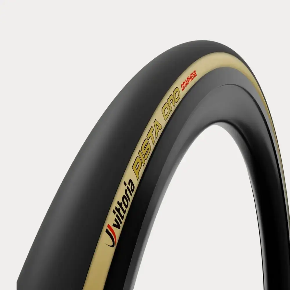 De Vittoria Pista Oro TLR is de overtreffende trap in baanbanden, ontworpen voor de pure jacht op snelheid. Deze band is soepel, efficiënt en extreem responsief, en heeft keer op keer bewezen dat hij topsnelheden kan bereiken op de wielerbaan. De kern van deze prestaties wordt gevormd door de combinatie van het ultralichte, soepele 320 TPI Corespun-K karkas en de geavanceerde Graphene 1C rubbersamenstelling. Deze combinatie zorgt voor een ongekend lage rolweerstand en een superieure grip. Met een gewicht van slechts 174 gram is dit de ultieme band voor de serieuze baanwielrenner die op zoek is naar elke mogelijke seconde winst.