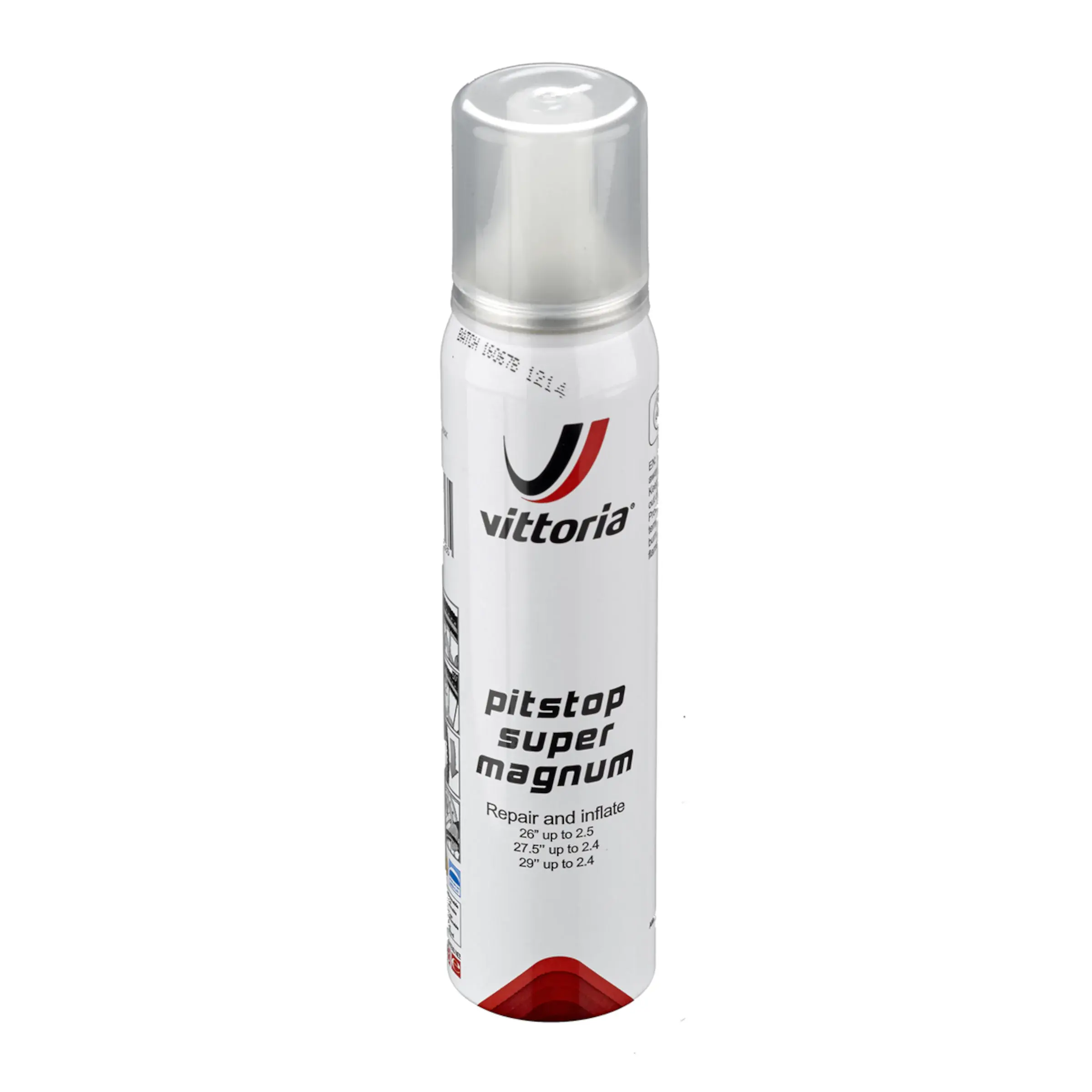 Een lekke band onderweg? Met de Vittoria Pitstop MTB Magnum is dit zo verholpen! Met behulp van dit latexschuim worden klein gaatjes in de binnenband of tube gerepareerd, waarna je de mtb-band binnen enkele seconden opblaast tot maximaal 2.4 bar (26" tot maximaal 2.5 bar). Deze uitvoering van 125 milliliter is voldoende om één band te repareren en neem je gemakkelijk met je mee tijdens jouw fietsritten. Bovendien droogt de latex pas na enkele weken in, waardoor je tijdens die weken extra goed beschermd bent tegen beschadigingen aan de band.