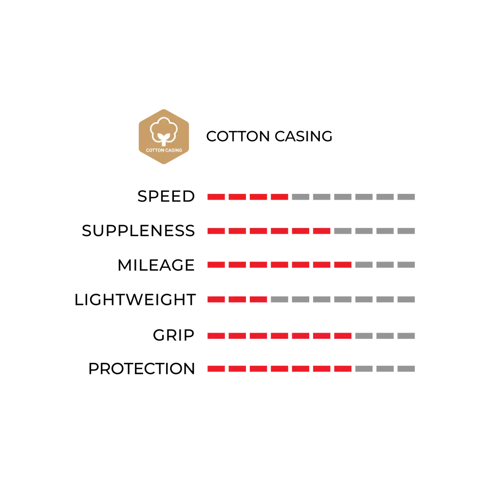 • 220 TPI katoenen karkas voor een soepel, responsief rijgevoel
