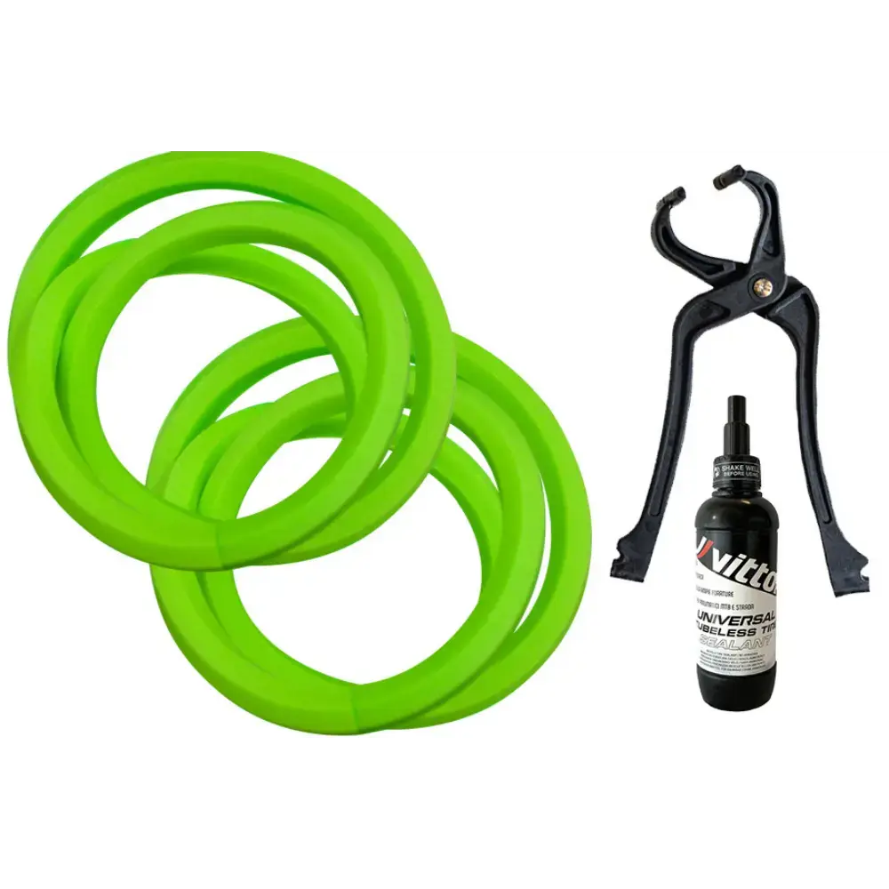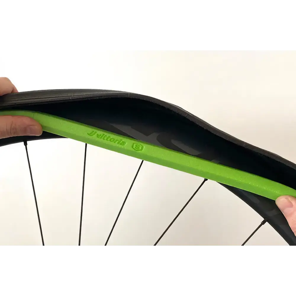 De Vittoria Airliner Gravel maakt het mogelijk door te blijven fietsen bij een lekke tubelessband. Als je band opgepompt is, is de Airliner klein en gekrompen in de velg. Als je lek rijdt, zal de Airliner uitzetten en zo voorkomen dat je band helemaal leeg voelt. Zo kun je toch thuiskomen op een lekke band. De Air-Liner is geschikt voor alle soorten tubeless banden. In dit pakket worden extra lange ventielen meegeleverd, zodat je de band makkelijker kunt oppompen, zonder dat de insert in de weg zit. Ze voorkomen meteen dat de ventielen vol latex komen te zitten.