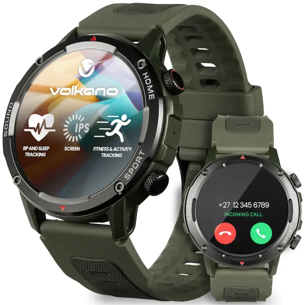 Met het Volkano Fit Power Series Sporthorloge blijf je altijd verbonden en houd je de controle. Dit veelzijdige horloge is de perfecte fitness- en gezondheidspartner voor iedereen die meer uit zijn wearable wil halen. Speciaal ontworpen voor actieve gebruikers, laat dit slimme horloge je bellen en gebeld worden via Bluetooth, direct vanaf je pols, dankzij de ingebouwde microfoon en luidspreker. Ideaal voor als je onderweg bent. Volg moeiteloos je dagelijkse gezondheidsgegevens. Met ingebouwde hartslag-, bloeddruk- en slaapmonitoring krijg je realtime inzicht in je algehele welzijn. De stappenteller en calorietracker helpen je om je fitnessdoelen te bereiken, waardoor elke beweging telt.