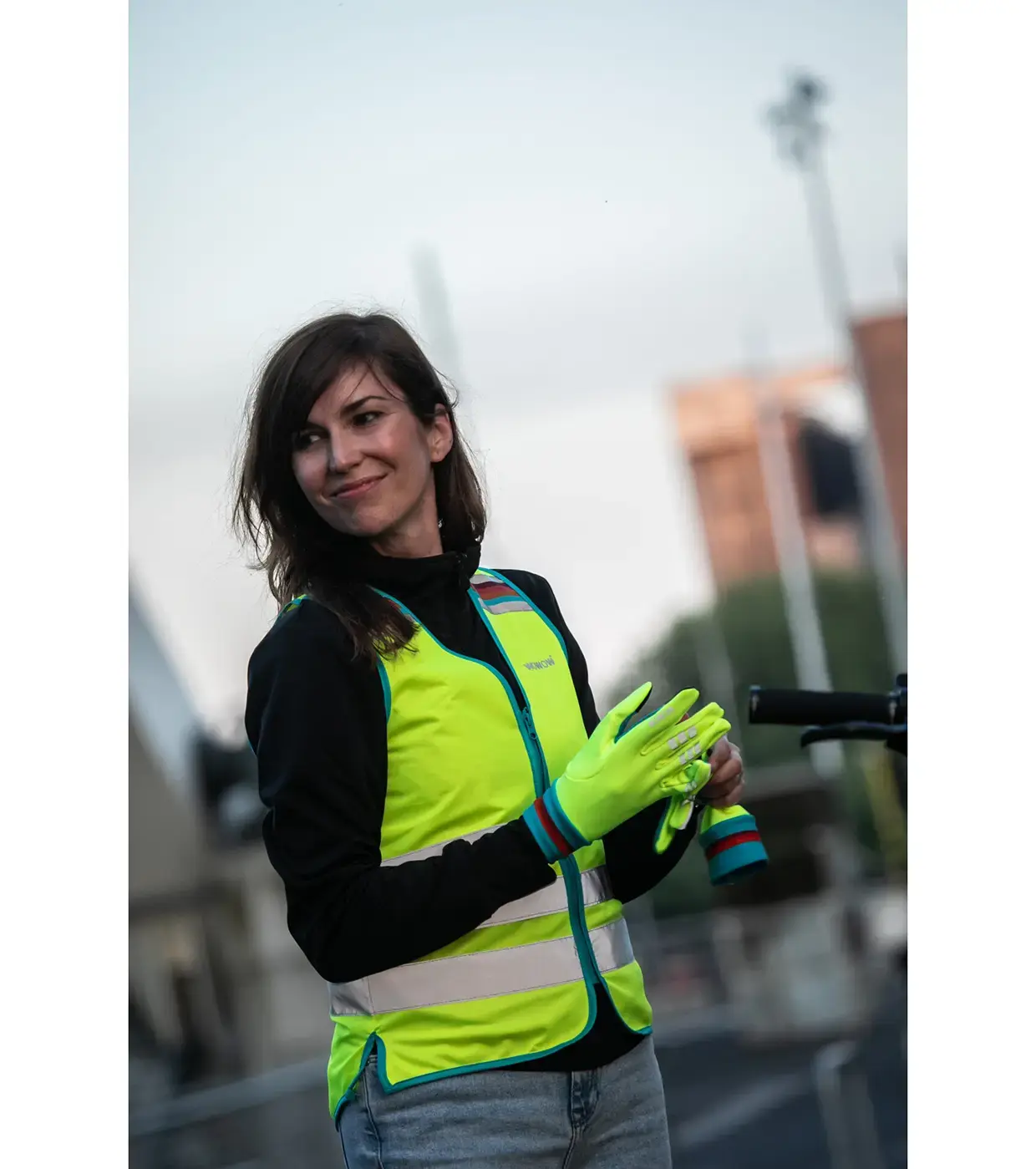 Het Lucy-vest van WOWOW is een stijlvolle en praktische toevoeging aan de Urban-collectie, ontworpen voor mensen die prioriteit geven aan veiligheid en zichtbaarheid tijdens het woon-werkverkeer of bij buitenactiviteiten in stedelijke gebieden.