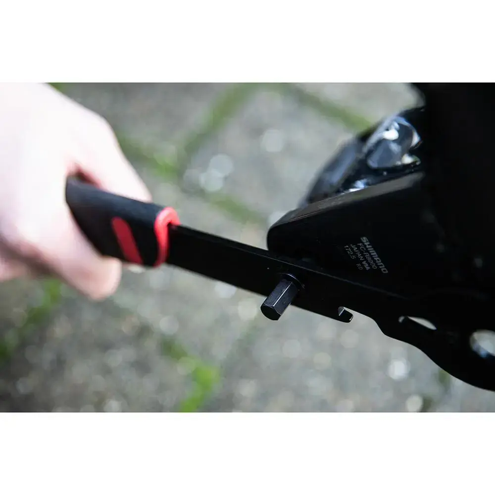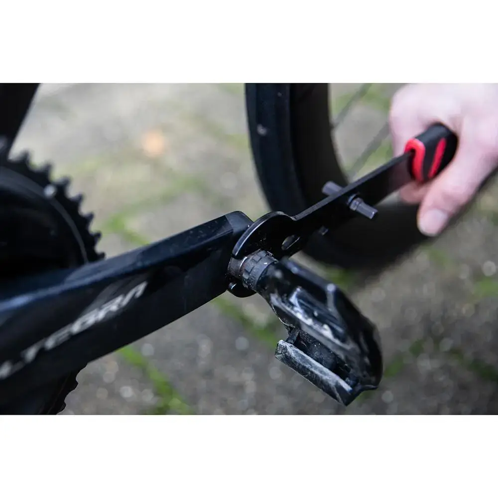 Ligt goed in de hand. Je hoeft door formaat en gewicht van sleutel weinig kracht te zetten om de trappers los te krijgen. Bij het vastzetten zijn de geïntegreerde inbussen handig en zo kan je ze ook niet kwijtraken. Flesopener komt misschien ooit nog van pas 😉