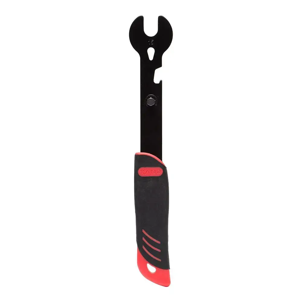 Met de XAND 4 in 1 Pedaalsleutel past op vrijwel alle pedalen, waardoor je hem voor al je fietsen kunt gebruiken! De pedaalsleutel maakt het mogelijk om snel en eenvoudig verschillende pedalen monteren of demonteren. Je hoeft je geen zorgen meer te maken of je wel de juiste passende sleutel voorhanden hebt. De sleutel is uitgerust met de bekende 15mm steeksleutel maar heeft daarnaast een 6 en 8mm inbuspassing, die je tegenwoordig op steeds meer pedalen aantreft. Het prettige handvat ligt goed in de hand waardoor je makkelijk kracht kunt zetten. Als leuke extra heeft deze sleutel een flesopener zodat je na het sleutelen jezelf kunt belonen met een lekker drankje.