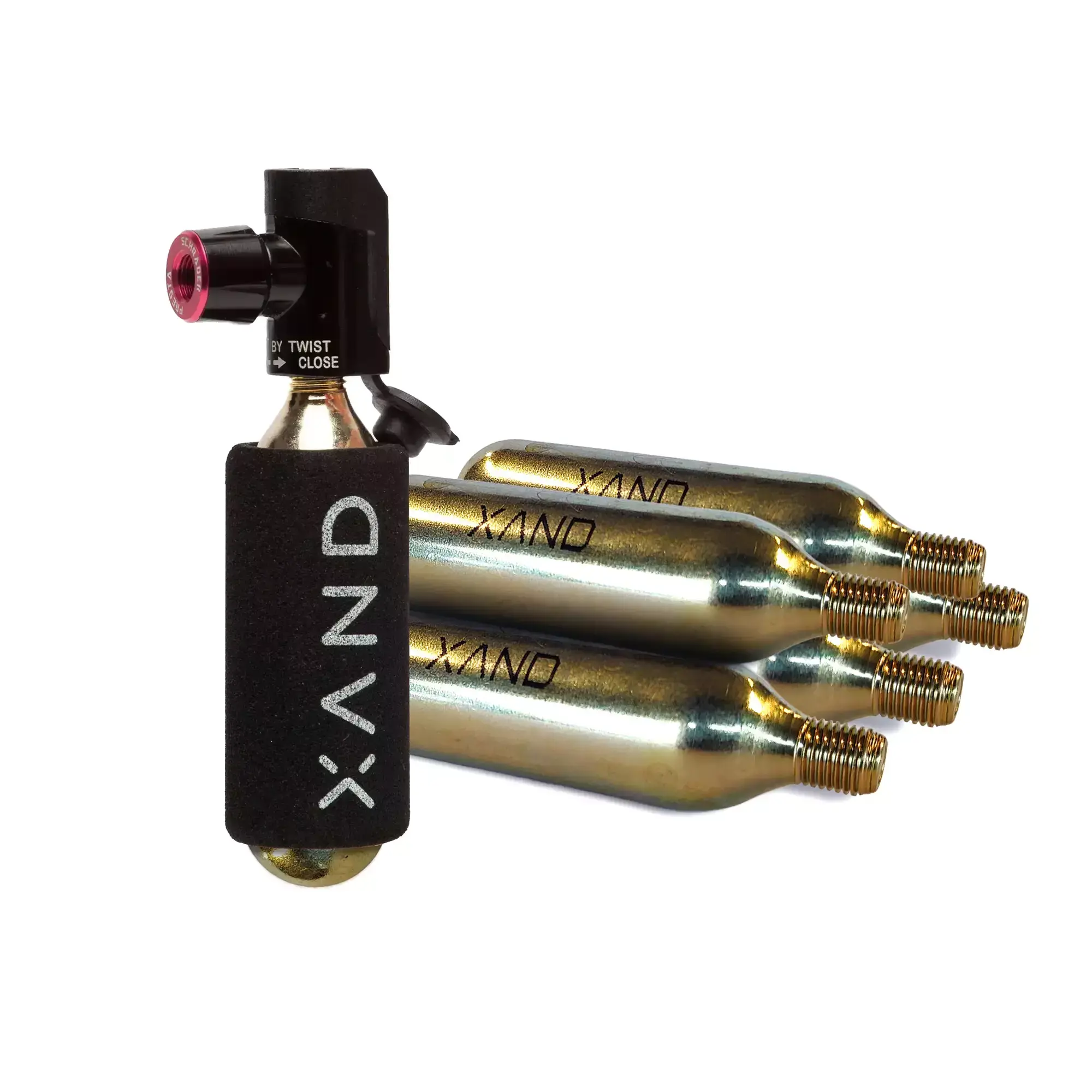 Met de XAND CO2 pomp kom jij onderweg niet voor verrassingen te staan. Rijd je lek? Dan biedt deze CO2 pomp direct uitkomst. De hoogwaardige aluminium pompkop heeft een strak design en is van alle gemakken voorzien. Zo dient deze niet alleen om op het ventiel te plaatsen, maar kan je hem ook gebruiken om één CO2 patroon in te bevestigen voor later gebruik. De pomp is zowel te gebruiken in combinatie met Schrader als Presta ventielen, waarbij de band binnen een aantal seconden weer op de gewenste druk staat. Je kan hierbij de luchtstroom controleren door de cartridge te draaien met behulp van de beschermhoes. Wij adviseren het gebruik van de 16 grams XAND CO2 patronen. In deze CO2 set worden in totaal 6 patronen meegeleverd.