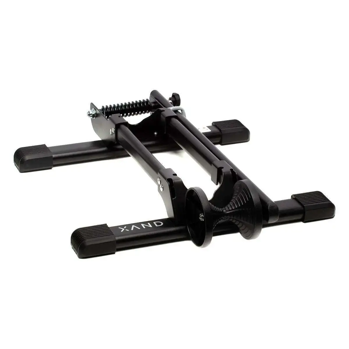 Zo stabiel als de XAND Fietsstandaard vind je ze nergens! Dankzij het innovatieve kantelmechanisme staat je fiets er snel in. Hij heeft geen bevestiging op de naaf, waardoor je hem ook met schijfremmen kunt gebruiken. De standaard is daarbij zo geconstrueerd dat het contact met je fiets minimaal is waardoor er geen schade kan ontstaan. De standaard is compact opklapbaar en daardoor makkelijk mee te nemen. De rubberen poten zorgen ervoor dat hij goed op zijn plek blijft staan.