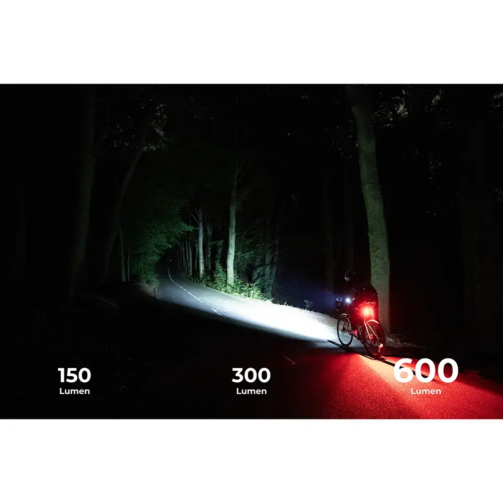 - Donkere omgeving: gebruik in echte donkere omgeving, zoals in bosrijk gebied. Geschikt voor MTB’ers en gravelrijders.