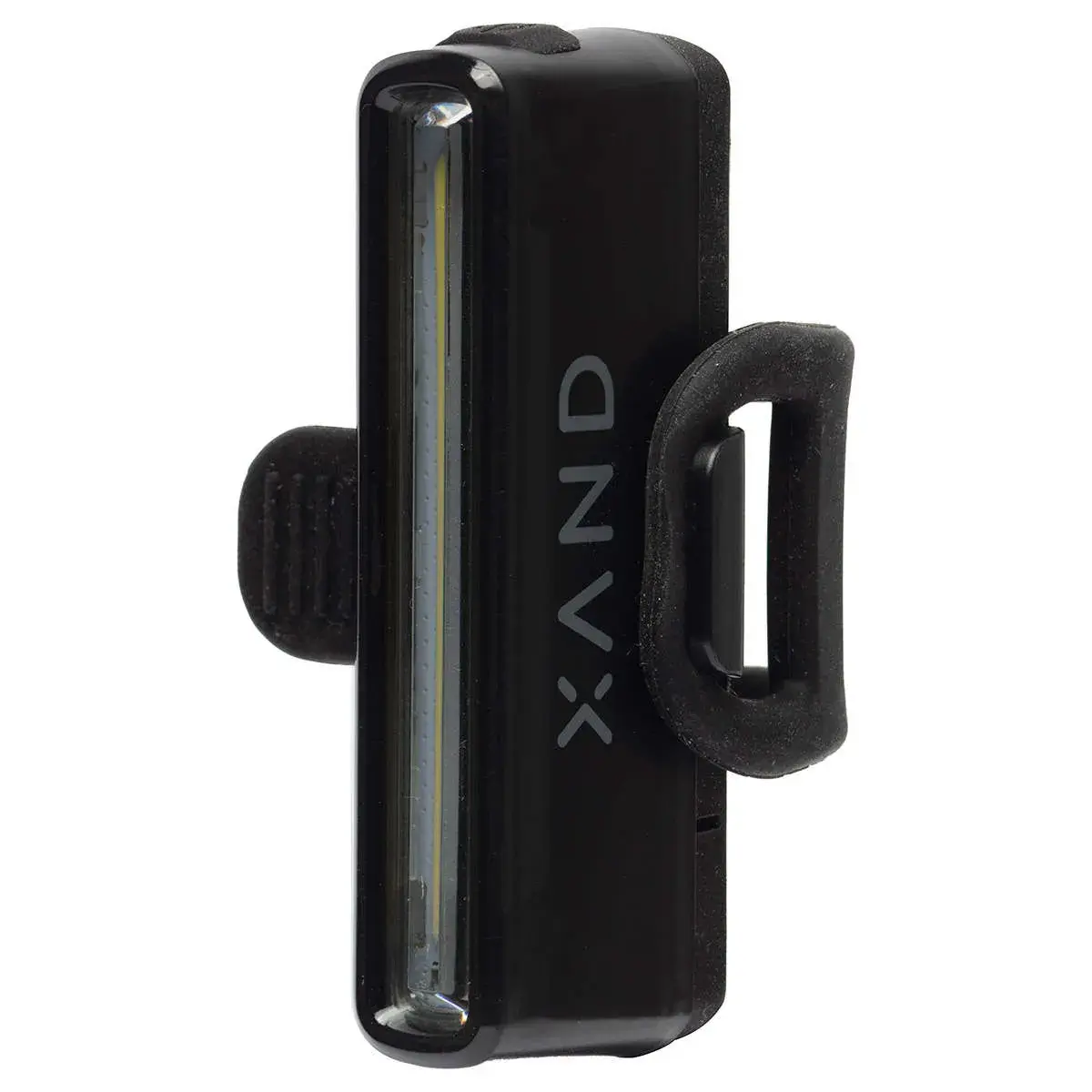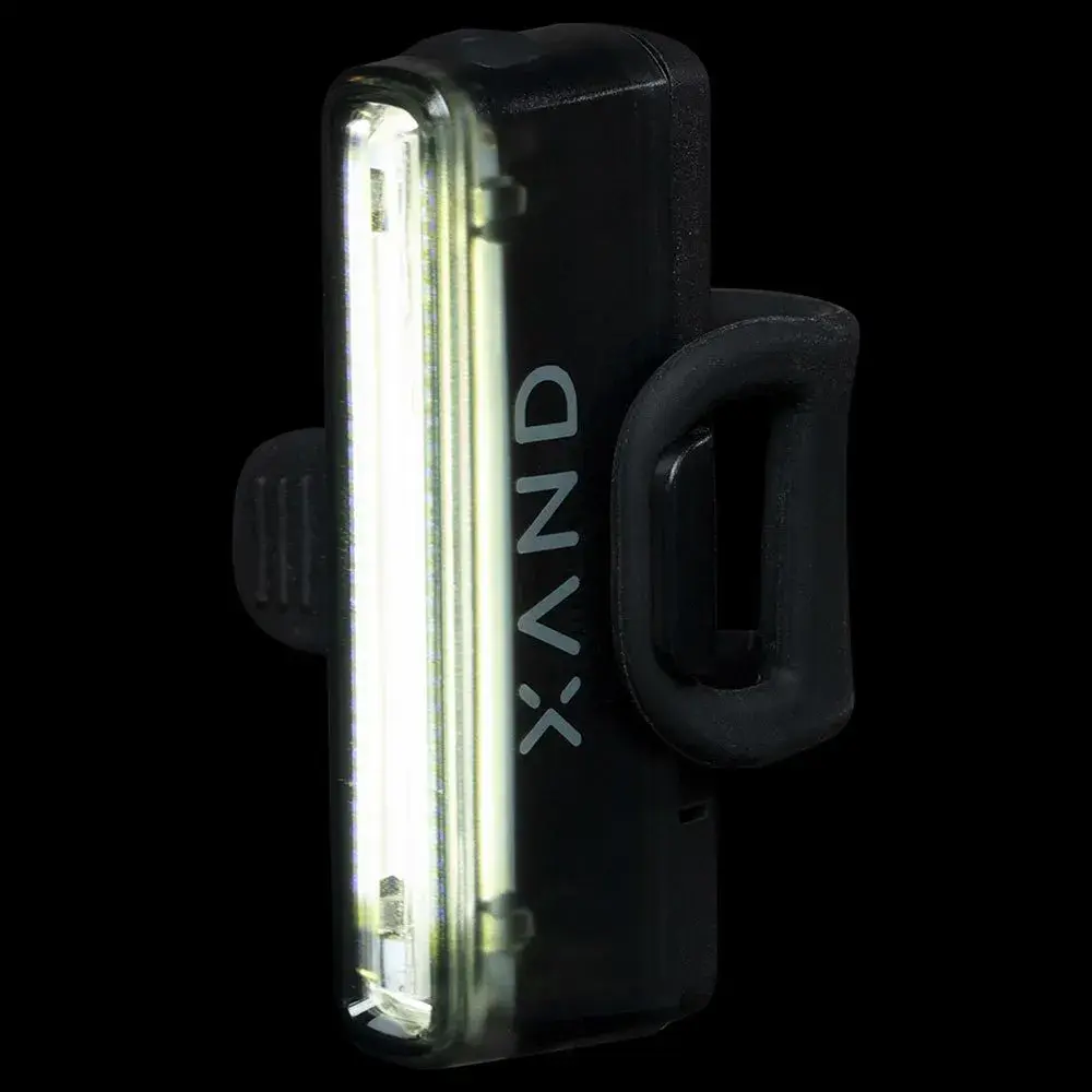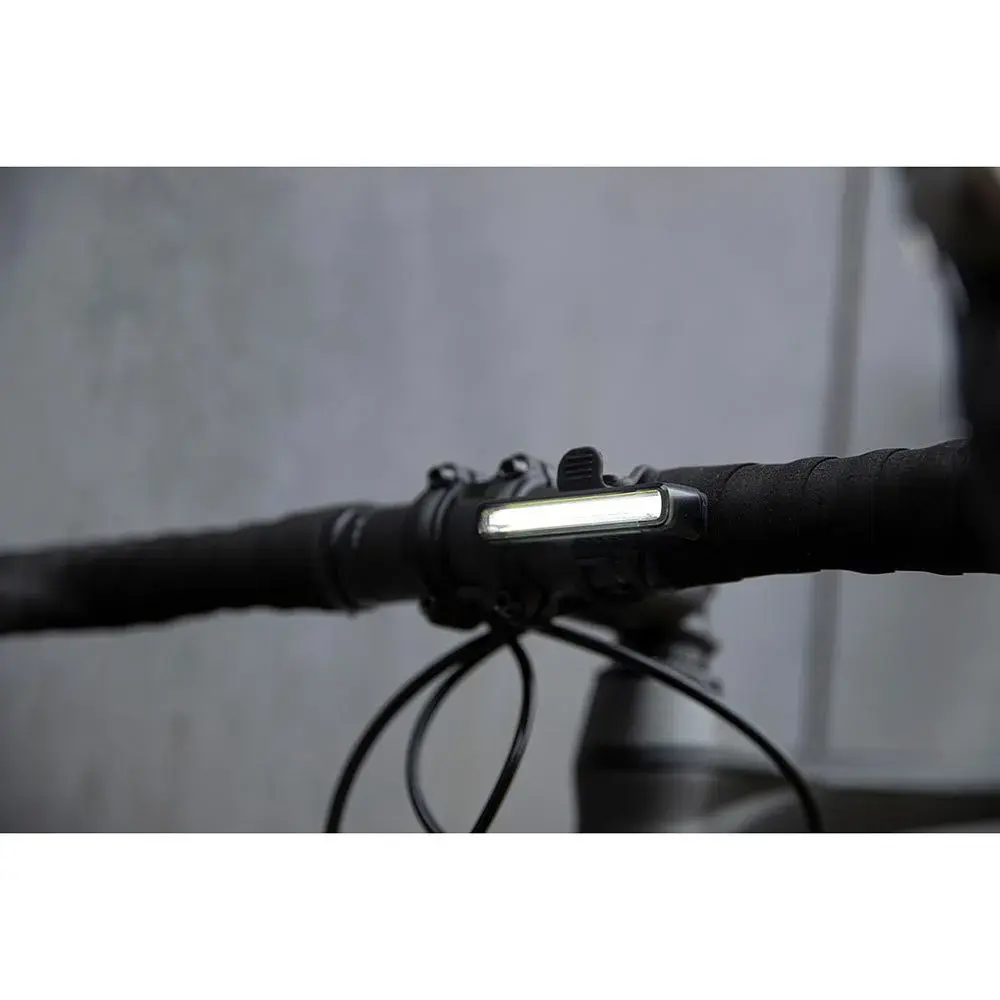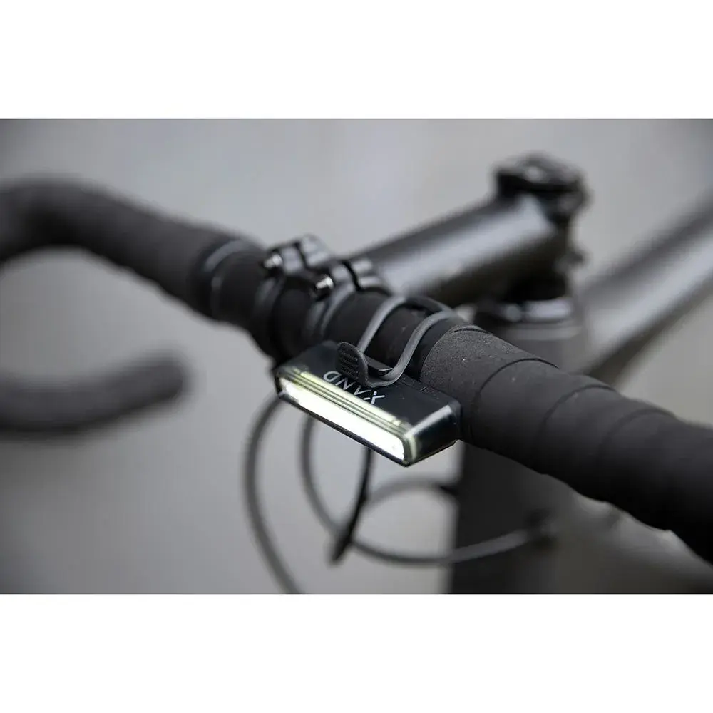 Deze XAND LED koplamp maakt je goed zichtbaar in het verkeer. De lamp is tot op een afstand van 800 meter zichtbaar waardoor je goed wordt opgemerkt door medeweggebruikers. Deze lamp is vooral bedoeld om jezelf zichtbaar te maken en kan dus ook goed gebruikt worden naast een lamp die voor een sterke lichtbundel zorgt. Dankzij de ingebouwde sensor die het omgevingslicht meet, past de lamp de hoeveelheid licht automatisch aan. Zo ben je altijd verzekerd van voldoende zichtbaarheid maar spaar je de batterij op de momenten dat het kan. Met de elastische band kun je de lamp eenvoudig maar toch stevig monteren op verschillende plekken aan je fiets. Met de verschillende standen kun je voor elke situatie de juiste hoeveelheid licht kiezen en daarnaast kiezen voor een bepaalde brandduur. Door de aan/uit knop even ingedrukt te houden kun je zien hoeveel energie er nog in de batterij zit. Met de meegeleverde USB kabel laadt je de batterij eenvoudig weer op.