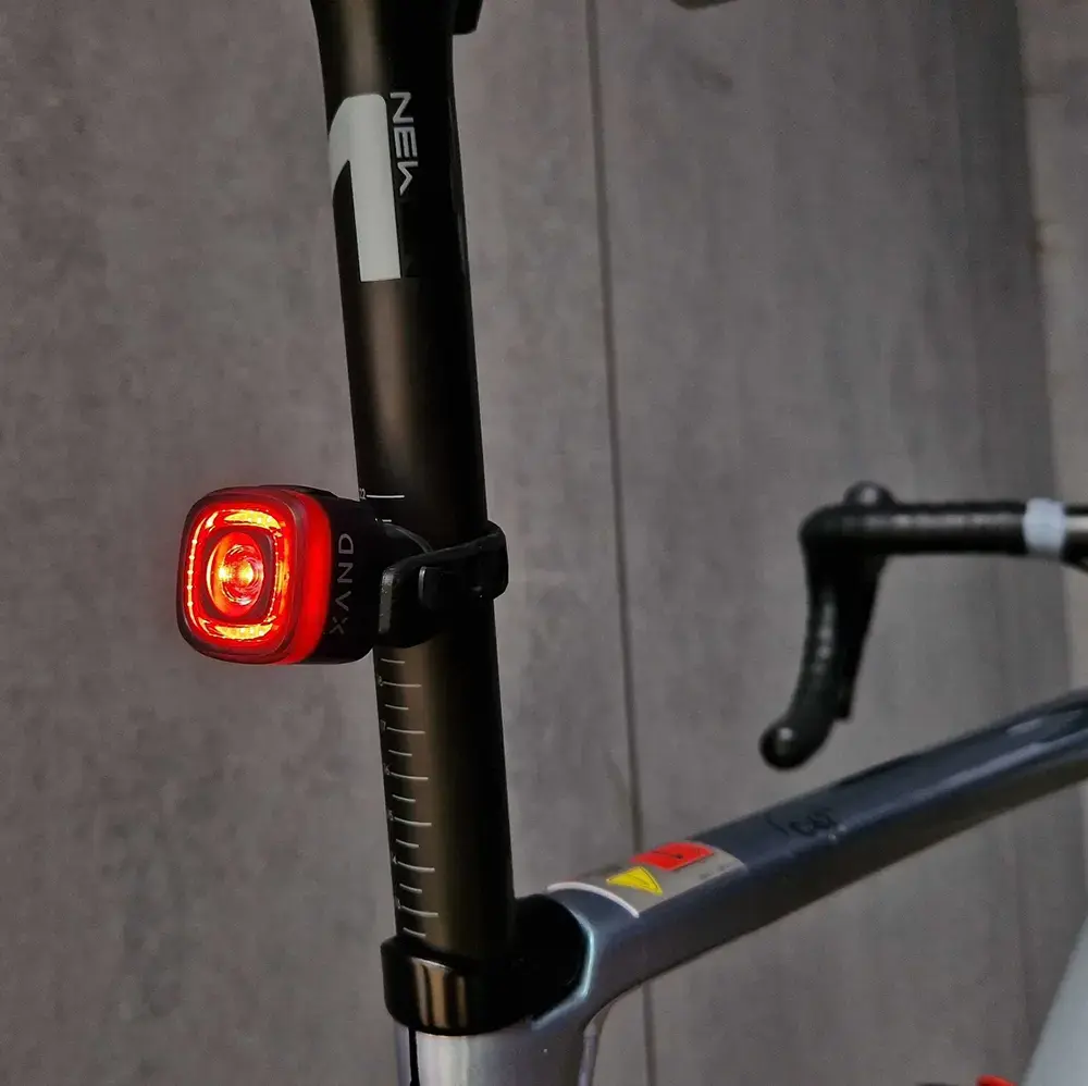 De XAND LED 150 Lumen Smart achterlamp zorgt ervoor dat jij goed opvalt overdag of in het donker. De lamp past de hoeveelheid licht automatisch aan wanneer het omgevingslicht afneemt. Door de ingebouwde bewegingssensor detecteert de lamp wanneer er stevig wordt geremd en zal dan fel gaan branden. Je kunt de lamp stevig monteren met één van de twee houders; onder het zadel of met de elastische band om je zadelpen of frame. Deze houder kun je laten zitten en met een simpele draaibeweging zet je de lamp erop of haal je hem er af als je moet opladen of hem mee wilt nemen. Door de 6 verschillende standen kun je voor elke situatie de juiste hoeveelheid licht kiezen en daarnaast kiezen voor een bepaalde brandduur. De kleur van aan/uit knop geeft aan hoeveel capaciteit de batterij nog heeft. De knop is groen wanneer de batterij nog voldoende capaciteit heeft en wordt rood wanneer de batterij onder de 20% komt. Met de meegeleverde USB-C kabel laad je de batterij in ongeveer een uur weer volledig op.