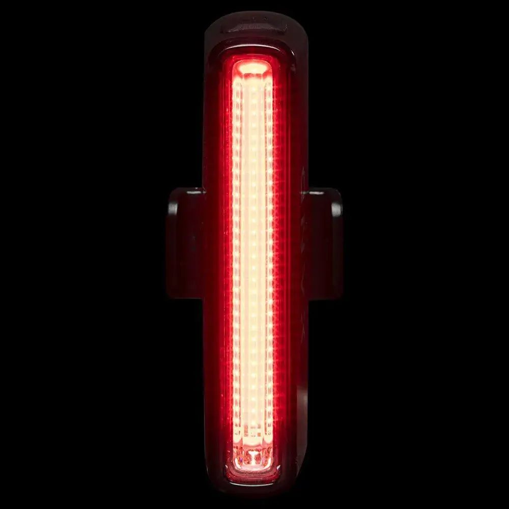 Met de XAND LED Achterlamp maak jij je goed zichtbaar in het verkeer. Door het langwerpige ontwerp en specifieke vorm van het glas is de verlichting tot een hoek van 230⁰ en tot op een afstand van 800 meter zichtbaar. Dankzij de ingebouwde sensor die het omgevingslicht meet, past de lamp de hoeveelheid licht automatisch aan. Zo ben je altijd verzekerd van voldoende zichtbaarheid maar spaar je de batterij op de momenten dat het kan. Met de elastische band kun je de lamp eenvoudig maar toch stevig monteren op verschillende plekken aan je fiets. Met de verschillende standen kun je voor elke situatie de juiste hoeveelheid licht kiezen en daarnaast kiezen voor een bepaalde brandduur. Door de aan/uit knop even ingedrukt te houden kun je zien hoeveel energie er nog in de batterij zit. Met de meegeleverde USB kabel laadt je de batterij eenvoudig weer op.