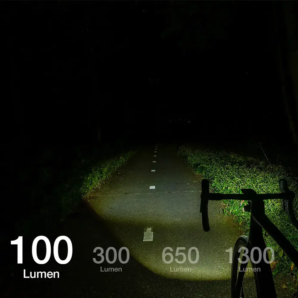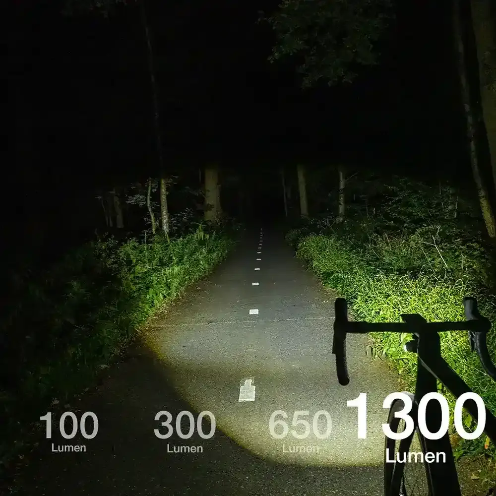 - Donkere omgeving: gebruik in echte donkere omgeving, zoals in bosrijk gebied. Geschikt voor MTB’ers en gravelrijders.