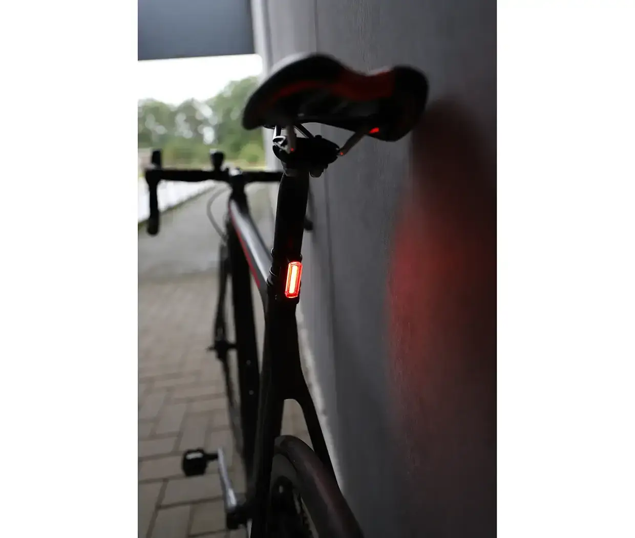 Achterlicht Met de XAND LED 20 Lumen achterlamp maak jij jezelf goed zichtbaar voor andere weggebruikers. Dankzij de hoogwaardige lens is het licht tot op 800 meter zichtbaar. Wanneer de batterij bijna leeg is, schakelt het lampje automatisch naar een lagere intensiteit zodat je nog veilig thuis kunt komen. Je kunt het lampje makkelijk stevig monteren op de plek waar je wilt met de elastische bandjes. Met de 4 verschillende standen; 2 waarbij de lamp continu brand en 2 knipperstanden, kun je voor elke situatie de juiste hoeveelheid licht kiezen om goed om te vallen. Door de aan/uit knop kort in te drukken, zie je hoeveel capaciteit de batterij nog heeft. De knop is groen wanneer de batterij nog voldoende capaciteit heeft en wordt rood wanneer de batterij onder de 20% komt. Met de meegeleverde USB-C kabel laad je de batterij in ongeveer 1,5 uur weer volledig op.