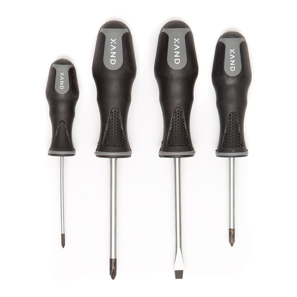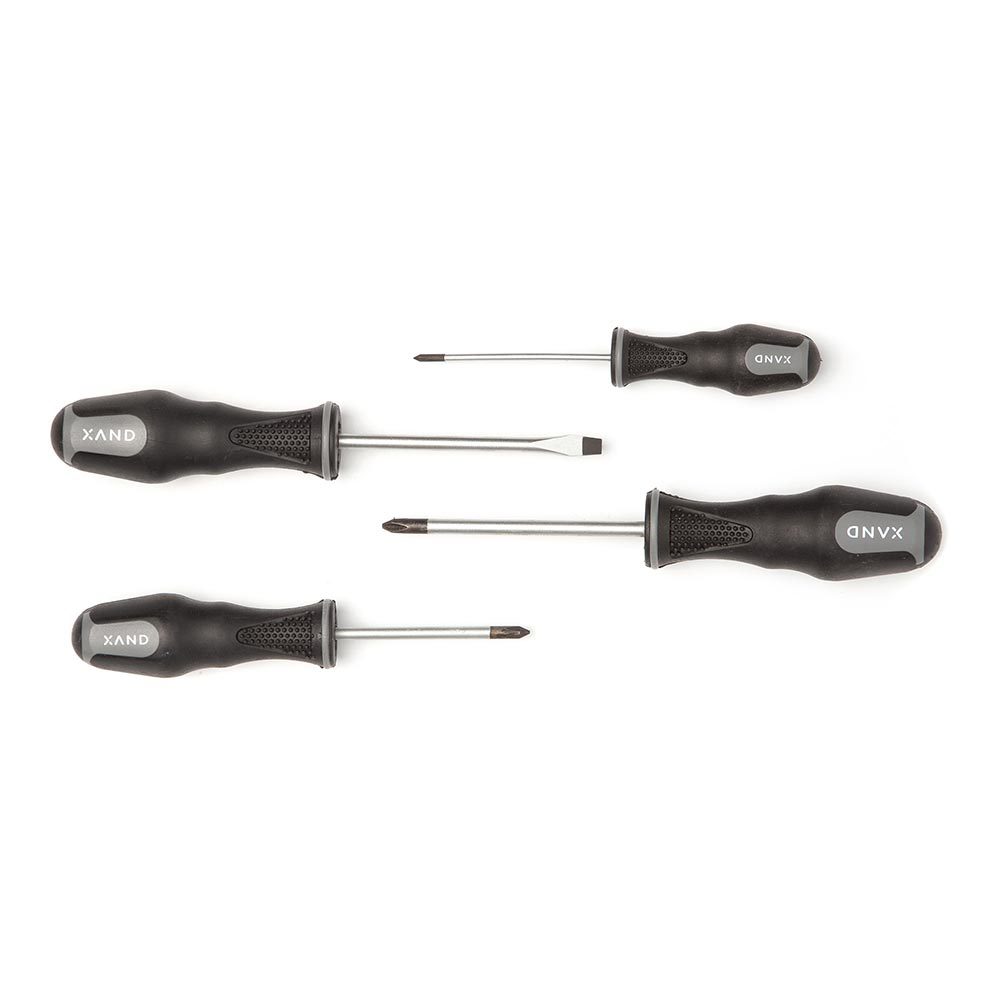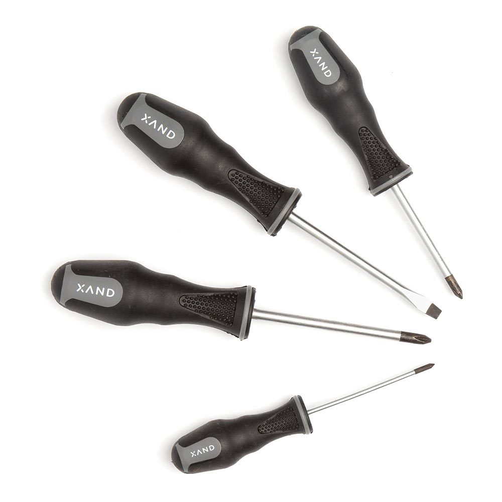 De XAND Schroevendraaier set bevat alles om jouw fiets goed en veilig af te stellen. Goed passende schroevendraaiers zijn namelijk essentieel om je fiets op de juiste manier af te kunnen stellen. De veel voorkomende klusschroevendraaiers of zogenaamde ‘pozidrive’ wil je niet gebruiken voor je fiets, omdat deze niet goed past en je daarmee te snel de stelschroeven beschadigd. Kies daarom voor de XAND Schroevendraaier set, zodat je goed passende schroevendraaiers hebt voor de verschillende afstelwerkzaamheden. Dankzij de magnetische punt raak je kleine schroefjes niet kwijt. De comfortabele rubberen handvatten liggen prettig in de hand.
