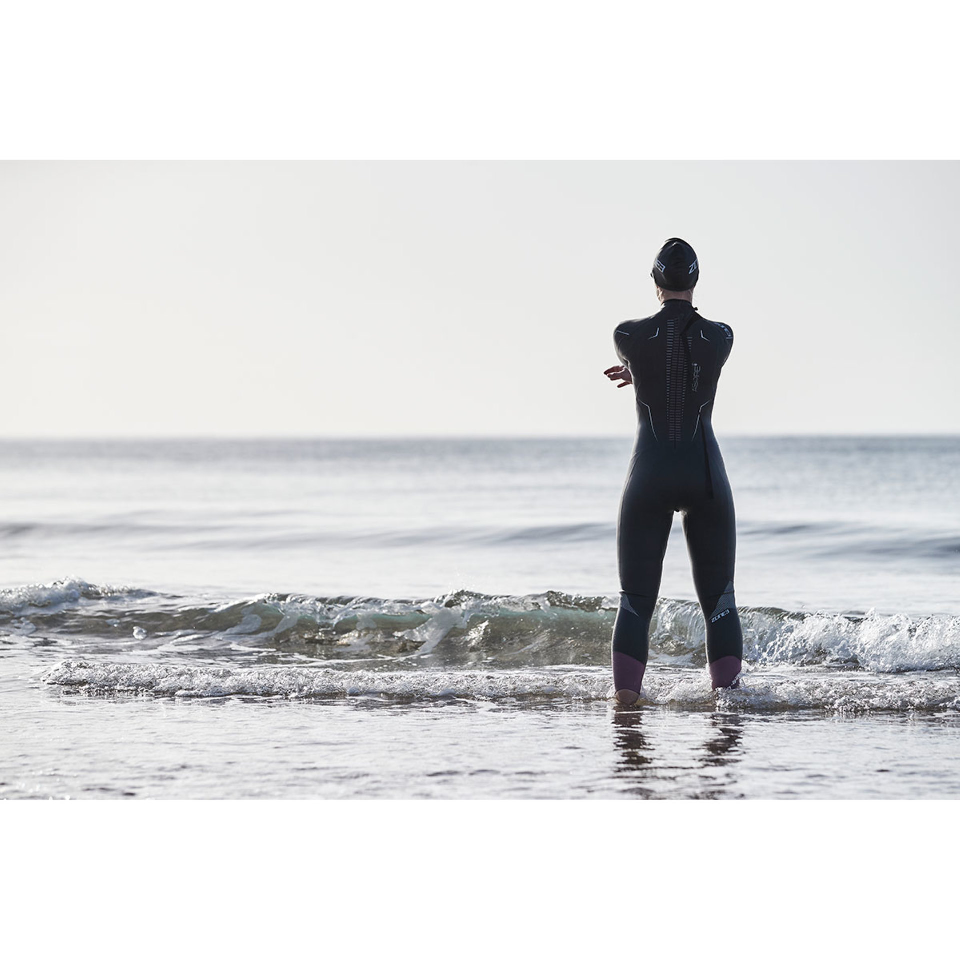 Het Zone3 Aspire 2022 Wetsuit focust zich op nog meer comfort en flexibiliteit. De vorige versie van de Aspire werd door 220 Magazine en Triathlete Europe beoordeeld met een 10/10. Het wordt ook wel het beste wetsuit in zijn prijsklasse genoemd! De Aspire stond al bekend om zijn flexibiliteit en bewegingsvrijheid. Door vernieuwde materialen komen die kenmerken in dit 2022 model nog meer tot z’n recht. Onder andere een dun X-10 schouderpaneel met 1mm SCS Nano neopreen zorgt voor die flexibiliteit. Het pak is gemaakt van 100% Yamamoto premium materiaal. Deze damesversie is gemaakt met een neutraal drijfvermogen profiel. De Cool-Spot onderarm panelen zorgen voor een verbeterd watergevoel en een betere catch bij de doorhaal. En voor vlotte transitie naar de fiets beschikt deze Aspire over Silk-X lining, een voering die zorgt voor comfort en snel uittrekken.